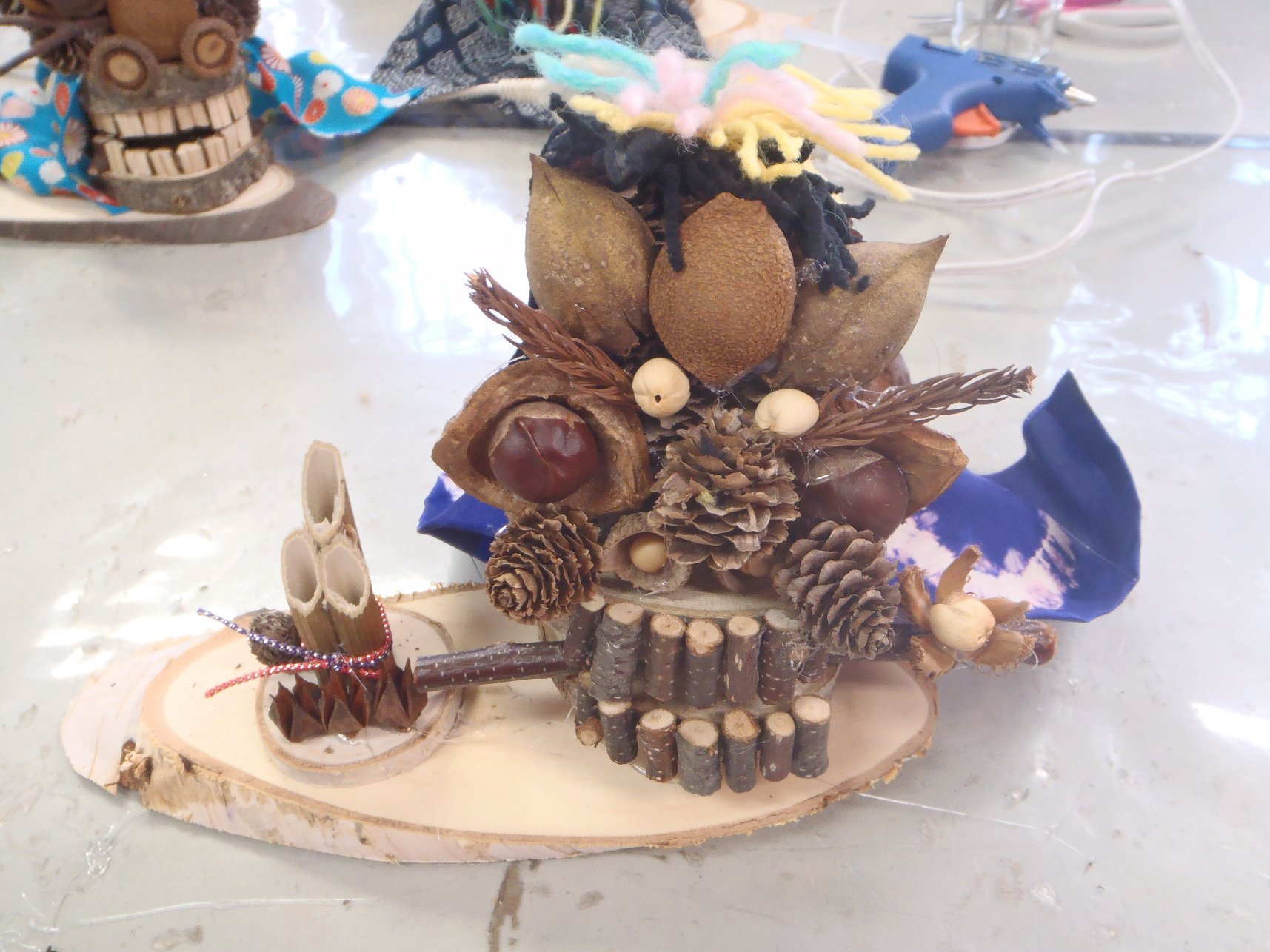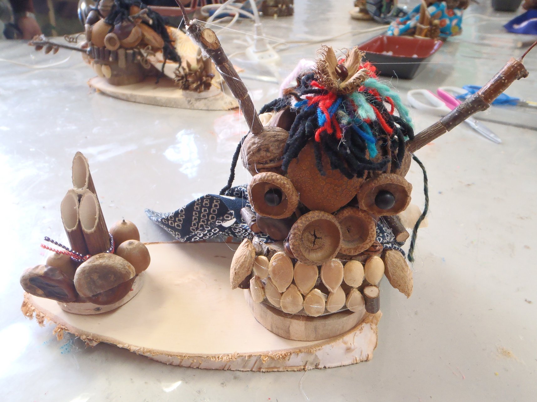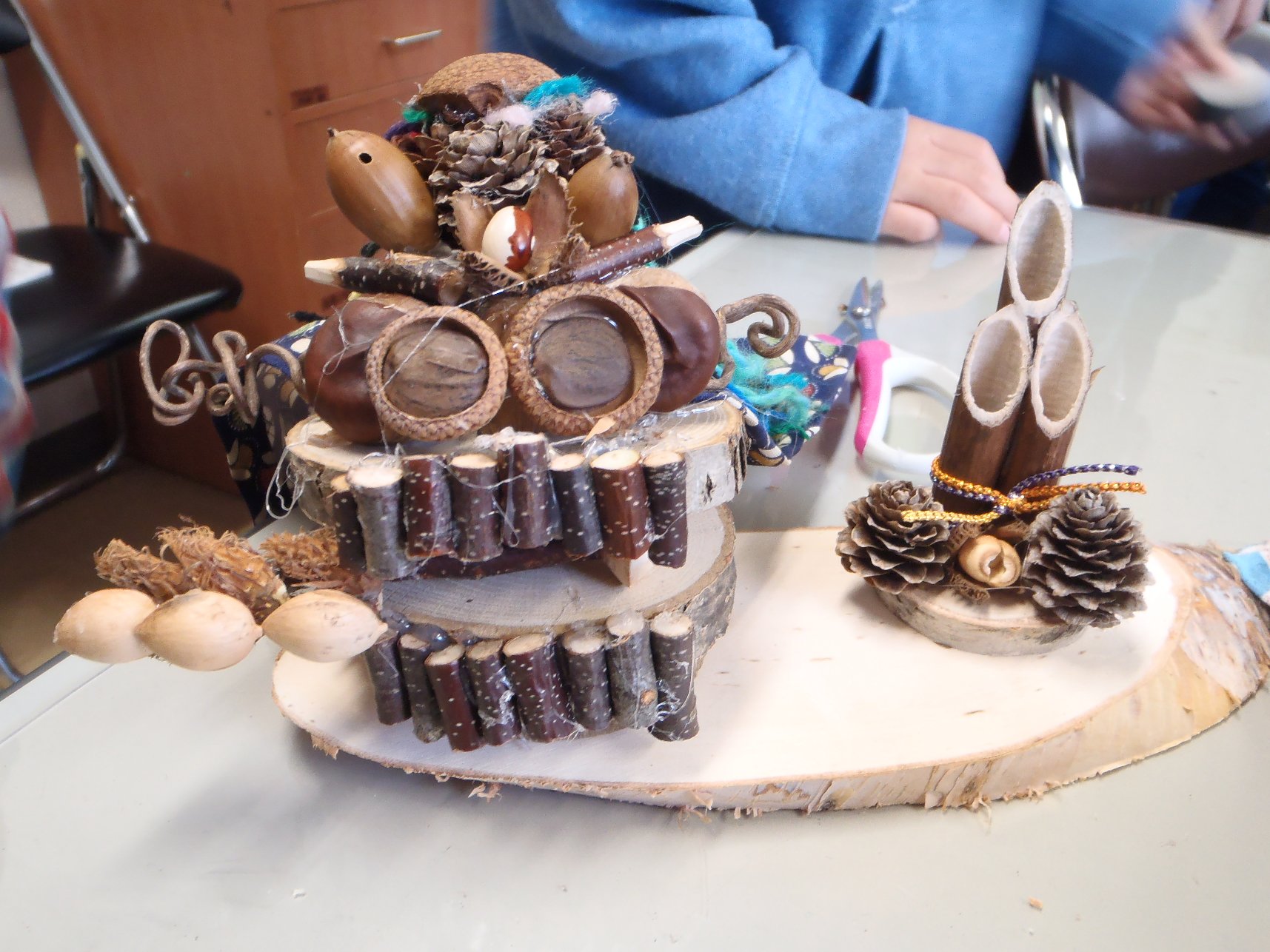 今日は子りす工房~こどもの日で、お正月にお部屋に飾れるかわいい獅子舞を作りました。 今回も、西岡公園らしく、木や木の実で獅子舞を作ります。 ボランティアの皆さんから作り方を教わりながら、それぞれが個性的な獅子舞を完成させました。