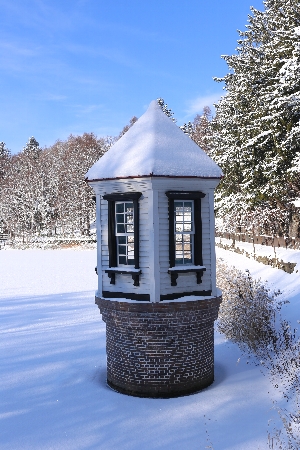 取水塔に雪の帽子