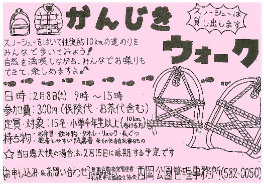みなさんこんにちは。冬のイベント「かんじきウォーク」のお知らせです。