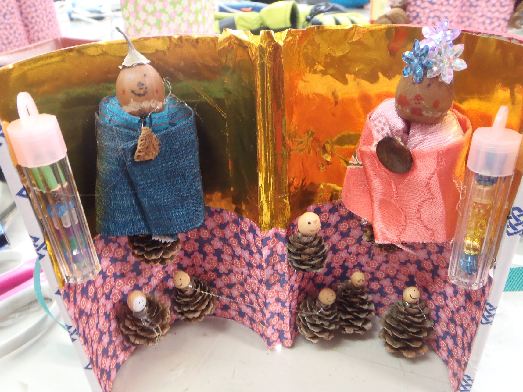 三人官女や五人囃子まで木の実で作って、とってもかわいいひな人形が完成しました。 参加してくれた皆様、ありがとうございました!