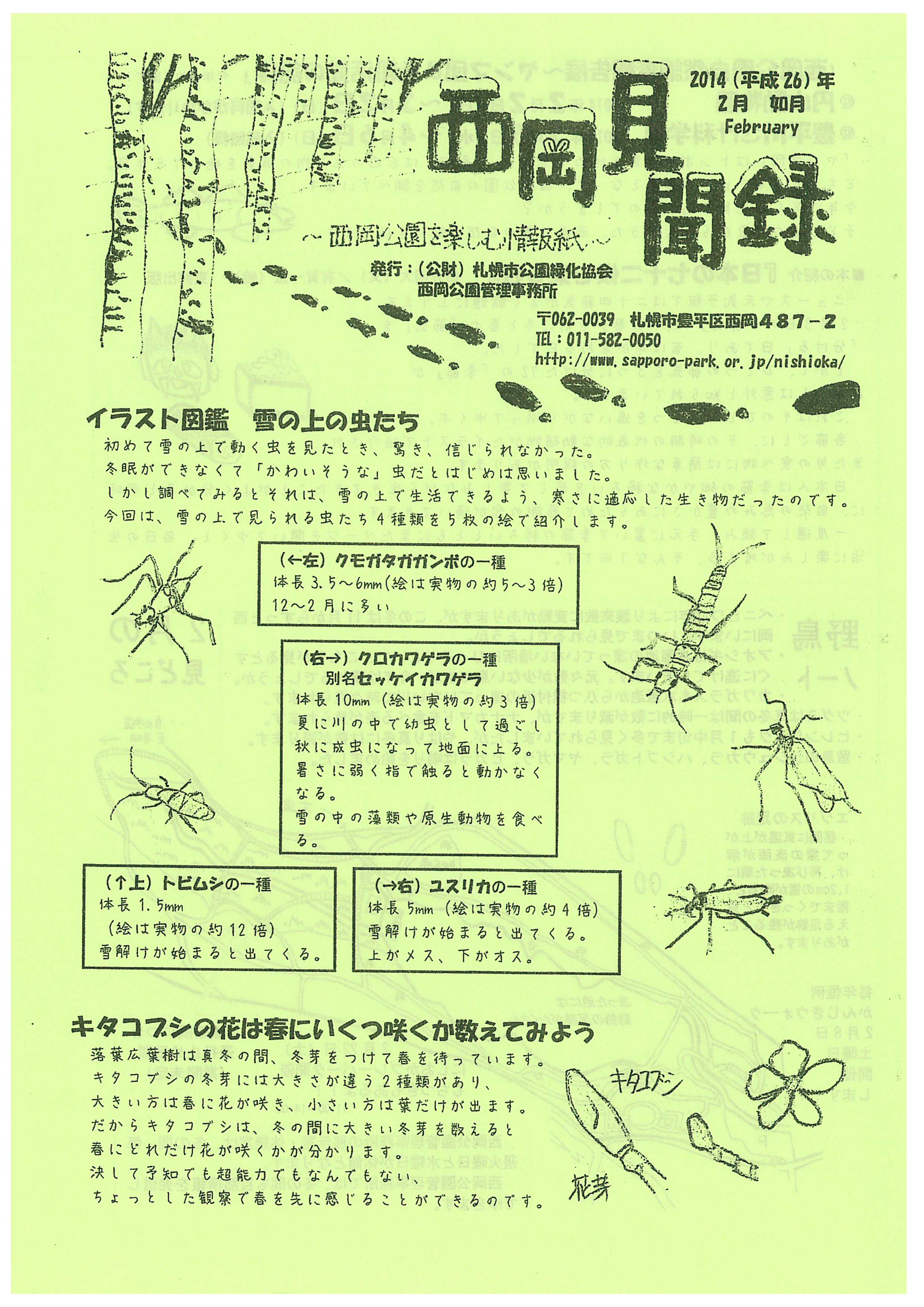 今月は雪の上の虫たちをイラスト付きで紹介しています。