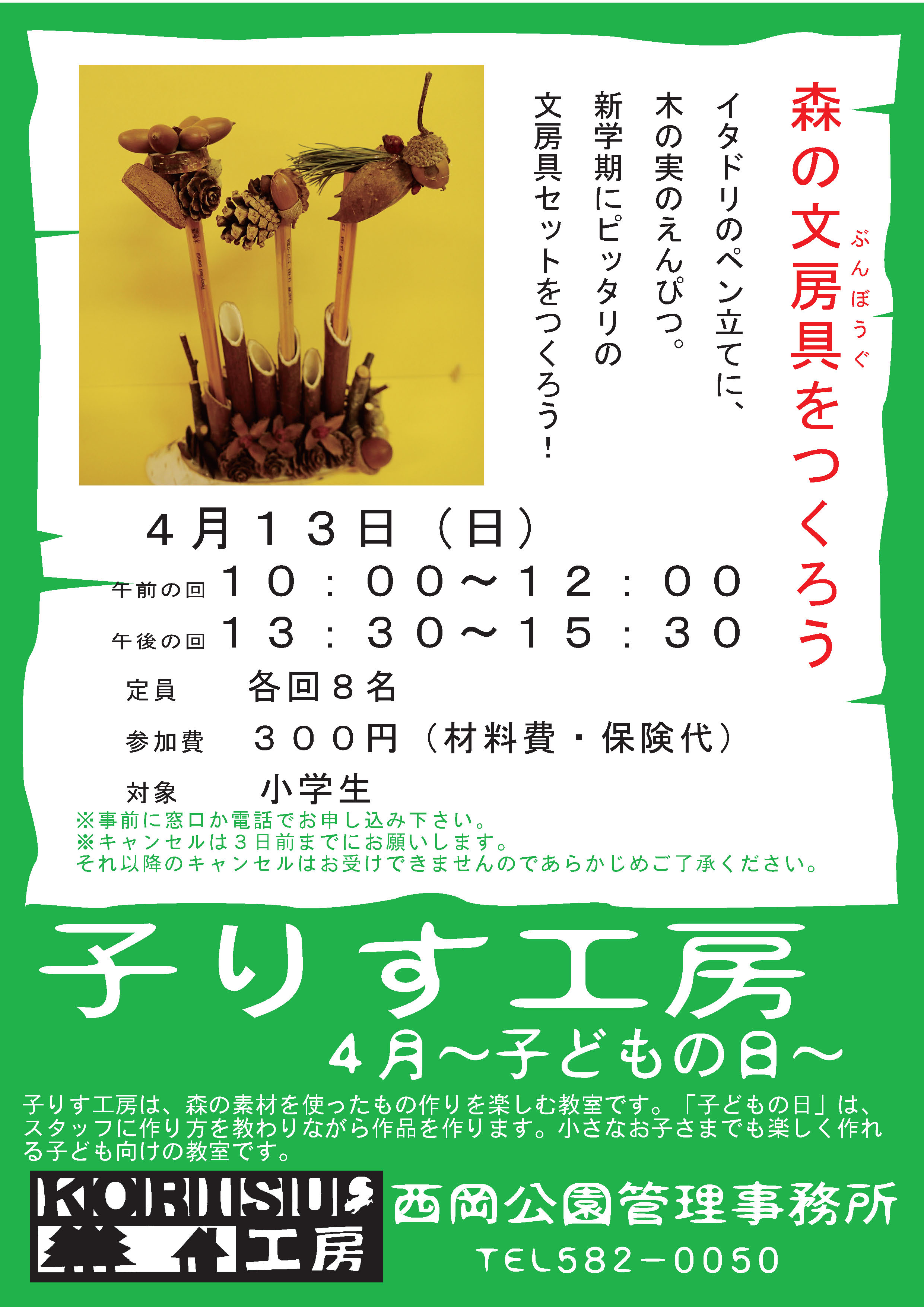 4月の子りす工房~こどもの日は、新学期にピッタリな文房具のセットを