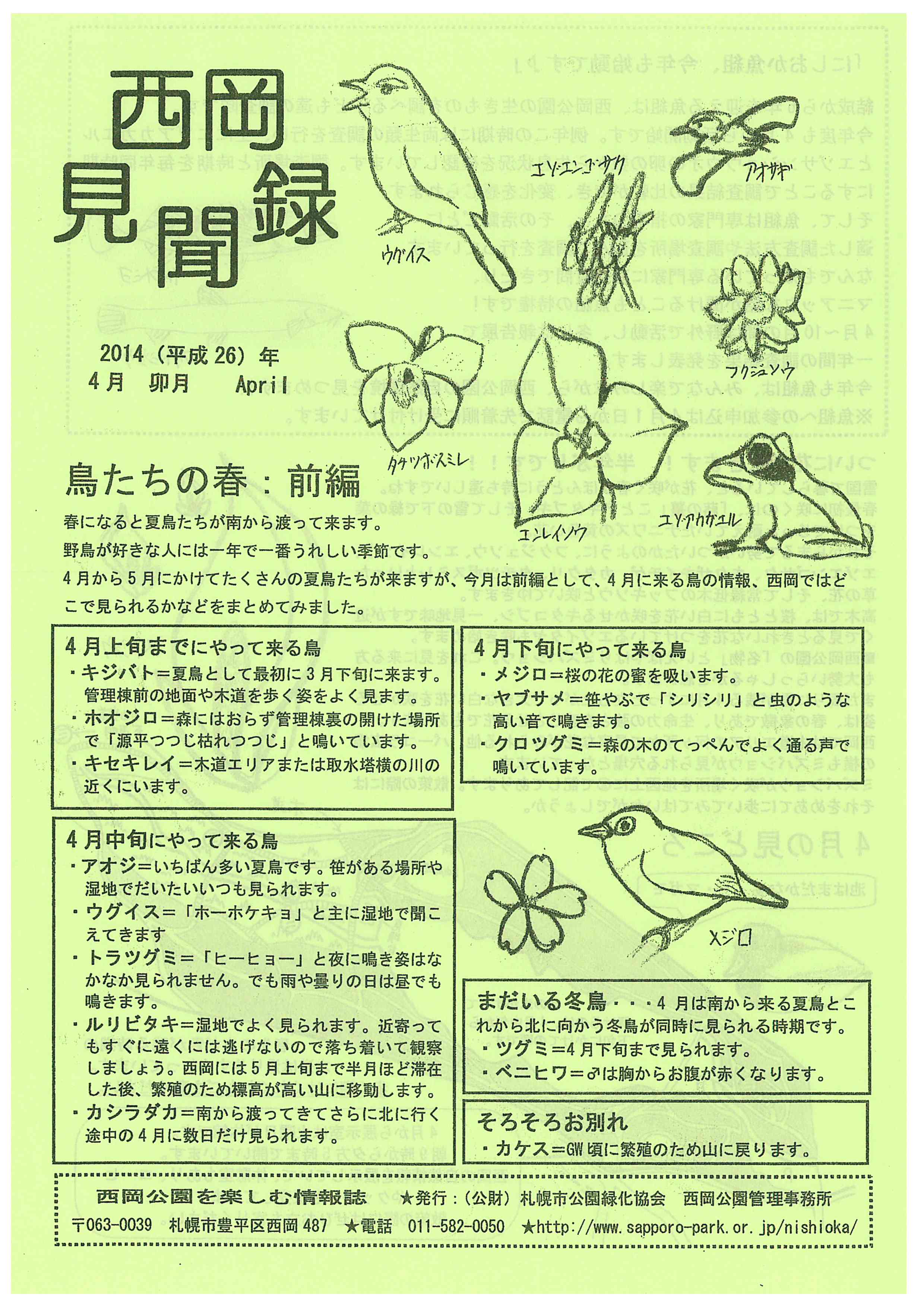 今月の見聞録のオモテ面では、待ちに待っている方も多いかと思われます、春の鳥のご紹介です。