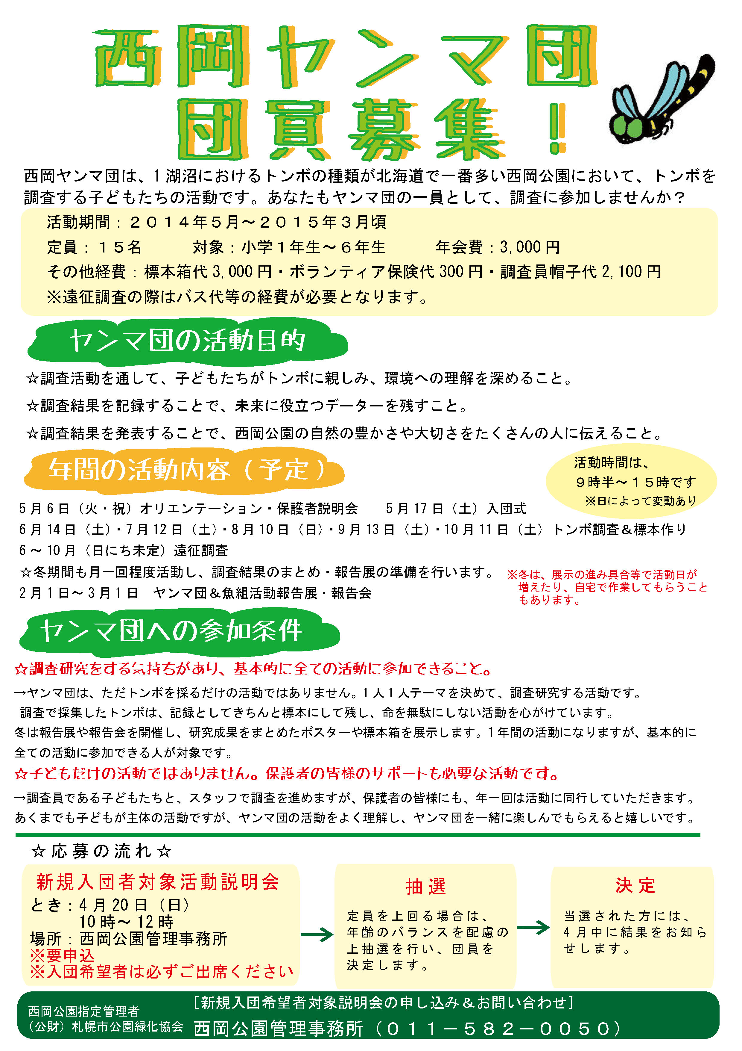 にご参加ください。説明会のお申し込みは、西岡公園管理事務所(582-0050)までお願いします。