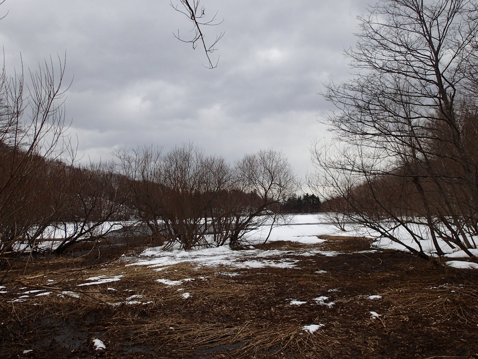 この時期に、木道の上の雪山から湿原に落ちると、体も濡れるし、悲しい気持ちになるので、雪が残っていない場所を歩くことをオススメします。