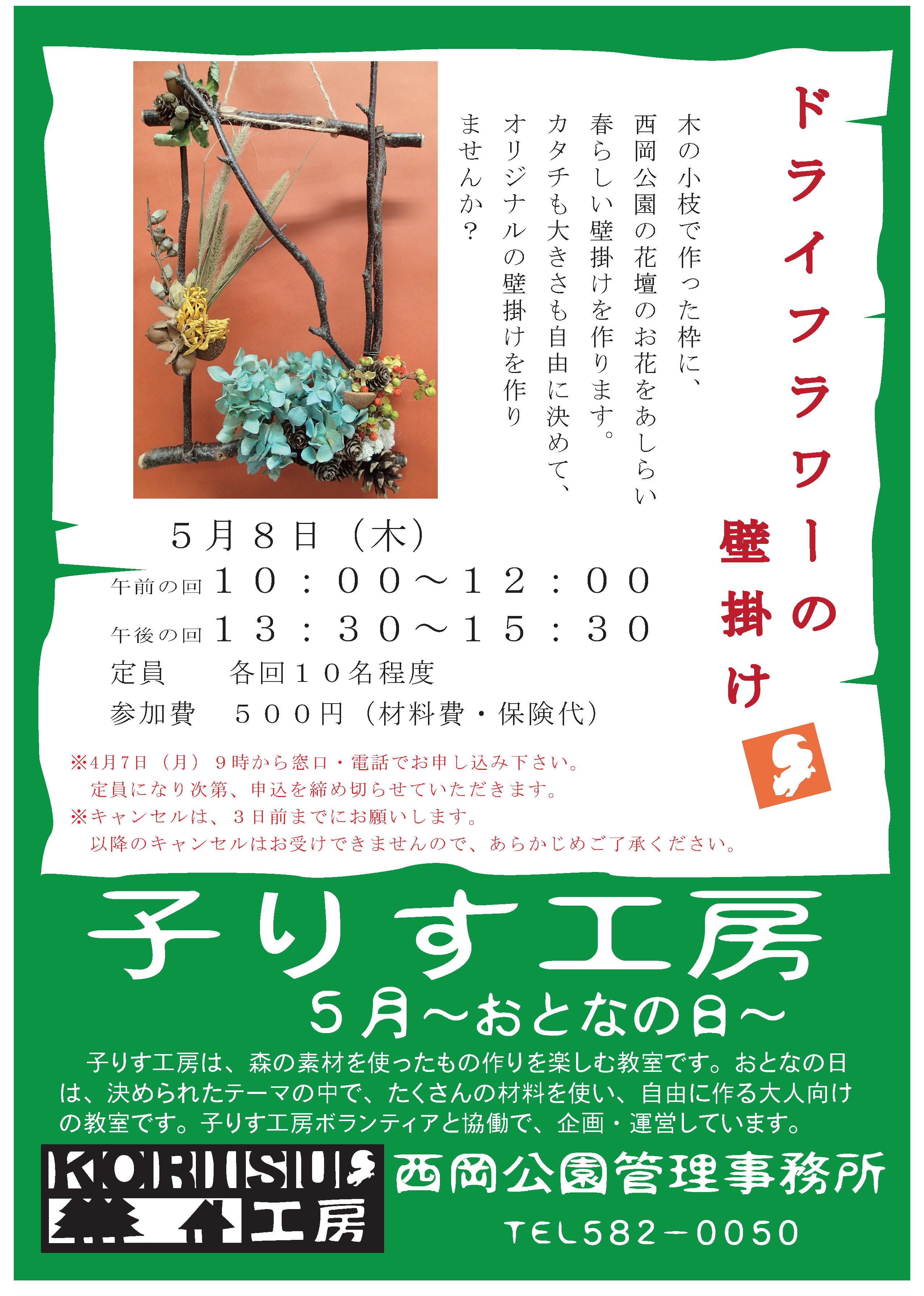 今年度最初の「子りす工房~おとなの日」は、ドライフラワーの壁掛けを