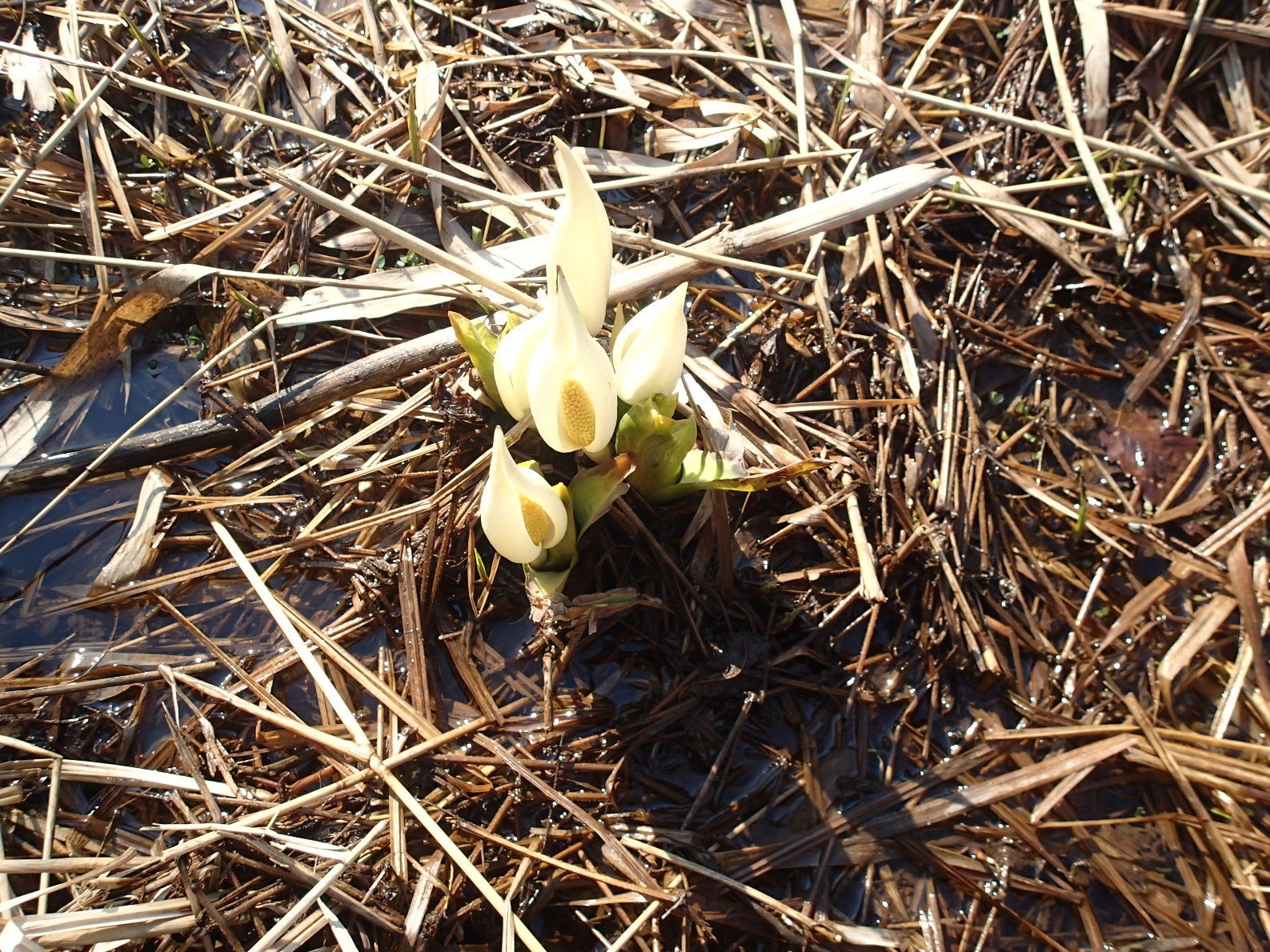 今朝園内を歩くと、ミズバショウが開花していました。 まだホウが開いたばかりで、とてもかわいらしいですね。 これからの気温や場所にもよりますが、やはり来週以降が 見頃となりそうです。
