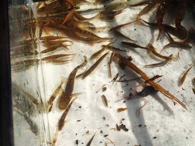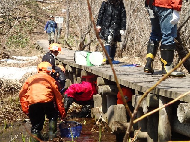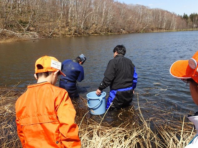 越冬して巨大化したオタマジャクシや、去年は獲れなかったエゾホトケドジョウなどが捕獲でき、貴重なデータとなりました。