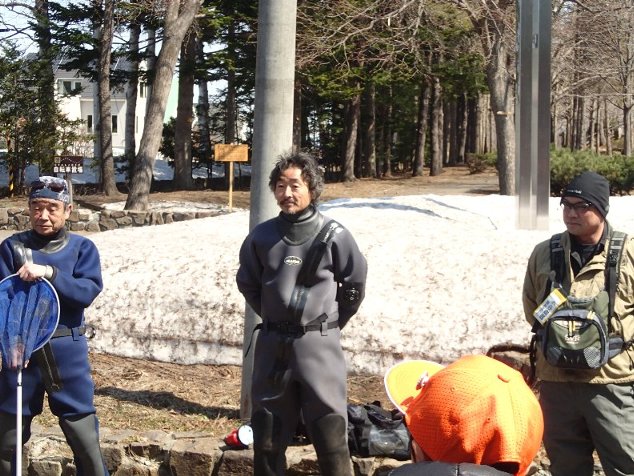 水温が低いので、最初は濡れないように調査している隊員がほとんどでしたが、帰る頃には結局みんなずぶ濡れでした。