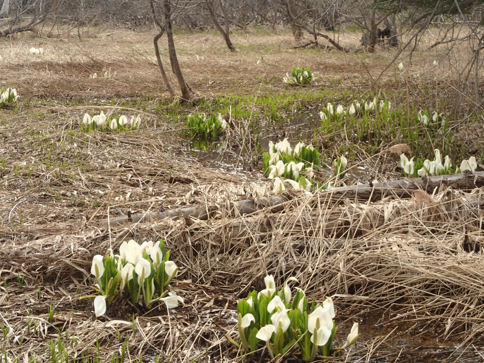 昨日、今日と暖かい日が続きますね。 ミズバショウもどんどん大きくなっていて、見頃は少し超えたかな・・・・という 印象でした。ただ、これから咲き始める株もいくつか残っていたので、 今週いっぱいは楽しめると思います。