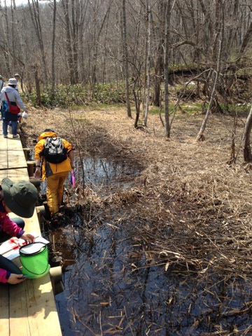 調査地に着くなり継続の隊員は「(同じ時期なのに)去年より湿地の水が少ない!!」と環境の変化を感じたようです。