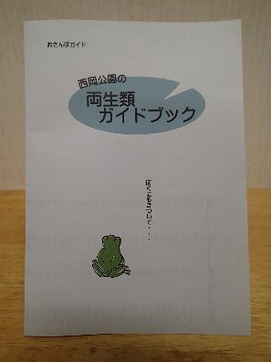 ↑西岡公園ではなぜかあまり見られないアマガエル、の後ろ姿が可愛い表紙の「両生類ガイドブック」です。