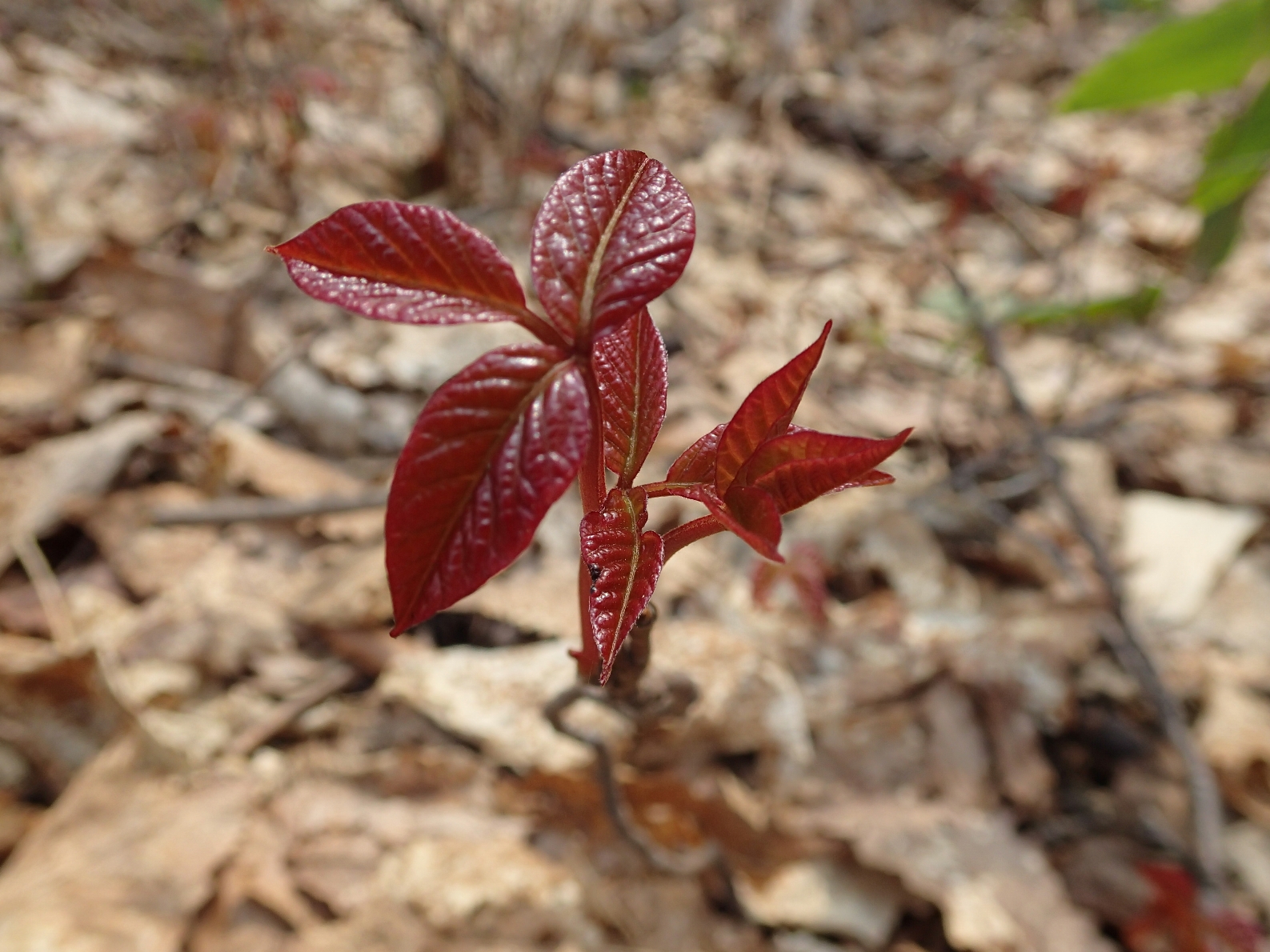 かわいらしい草花に混ざって真っ赤な葉を広げているのは「ツタウルシ」。 園内の至る所に生えているので、かぶれやすい人は注意してくださいね!
