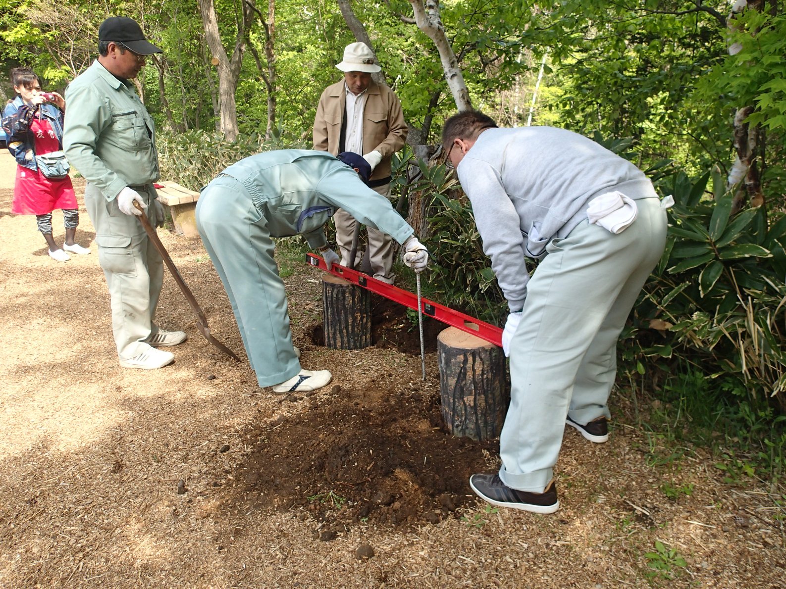 今日は、札幌左官技能士会の皆さんが、ベンチを4基、園内に設置してくれました。
