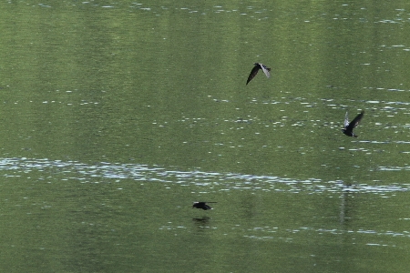 山の向こうから10羽ほどの群れで飛んできて、水面すれすれに飛んで水を飲む行動を交互に繰り返し、3分程でまた山に戻ってゆきました。