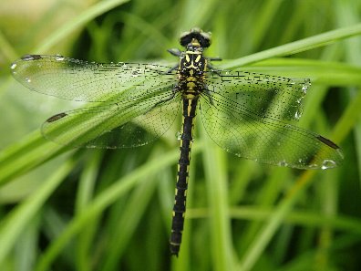 ↑ニホンカワトンボのすぐ隣には、モイワサナエが羽を広げて休んでいました。