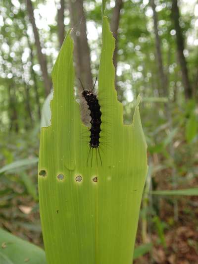 北海道立総合研究機構によると、マイマイガの大発生には周期があり、おもにウィルス病の発病で大発生が終了するそうです。