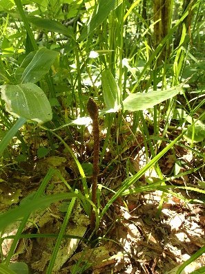 この植物は葉緑体を持たず、上から下まで茶褐色の植物です。