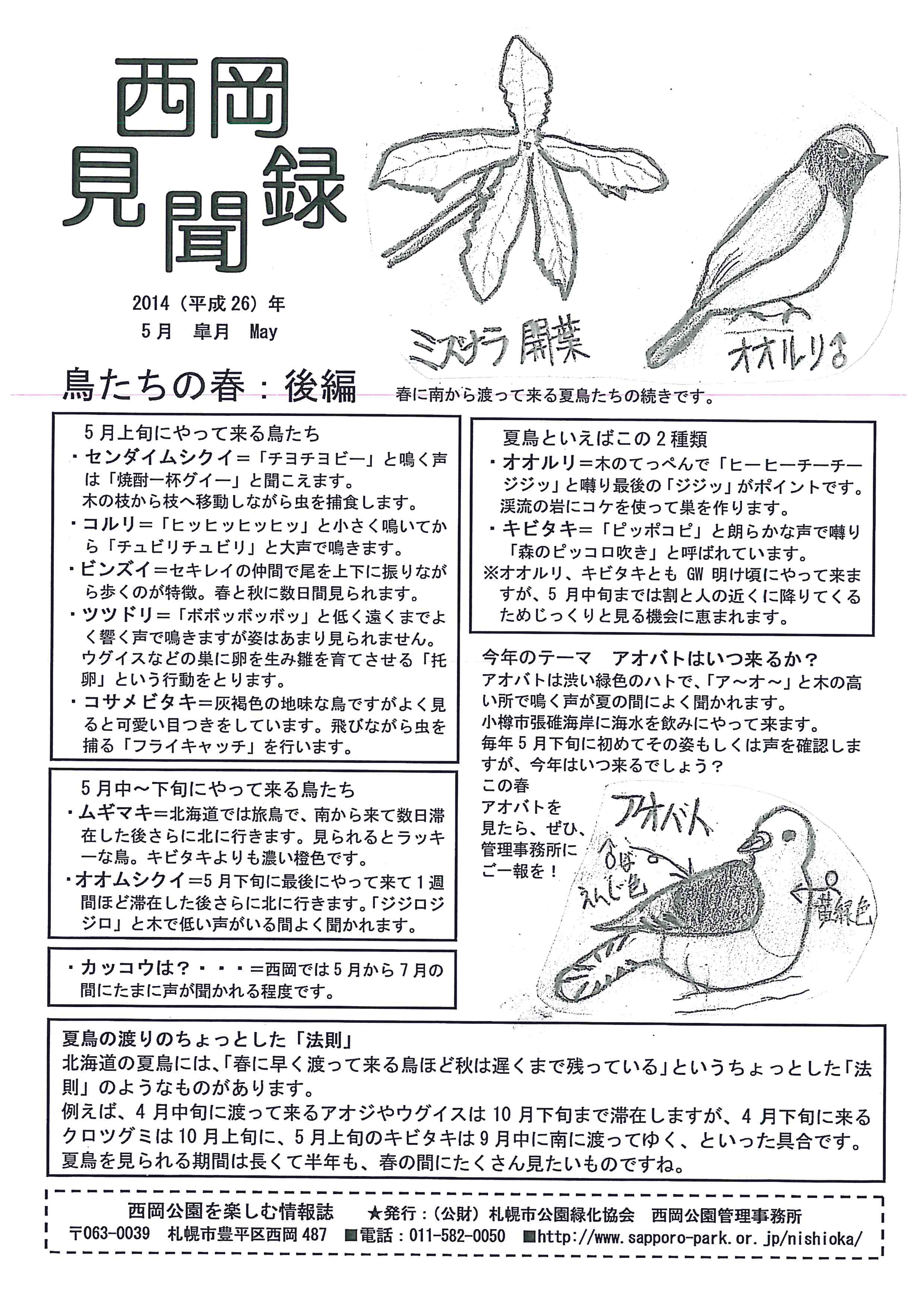 今月号は、「鳥たちの春:後編」と題し、5月に南からやってくる夏鳥の情報をまとめました。