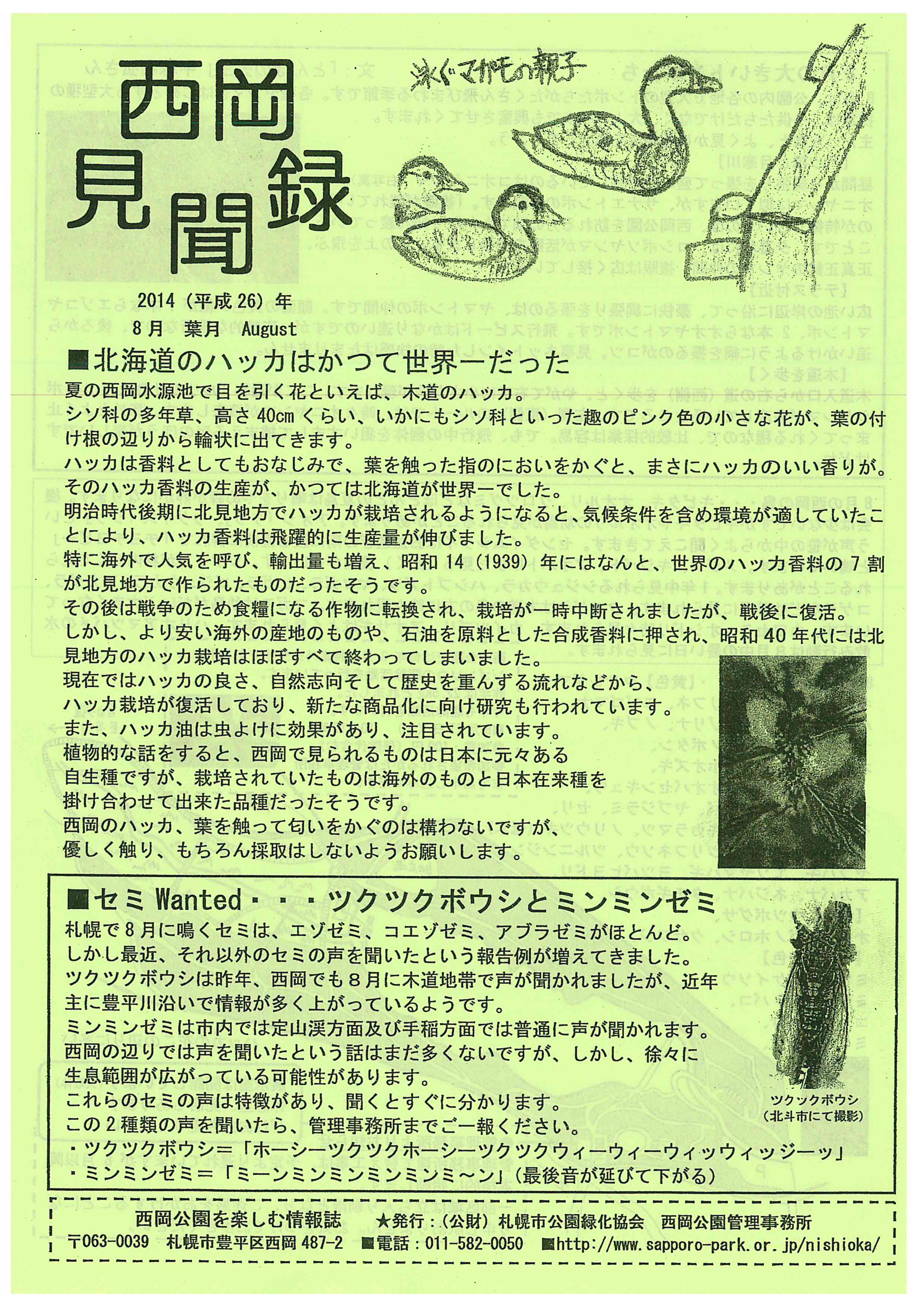 今号は、西岡でも花が見られるハッカがかつては北海道から世界に輸出していたという話。