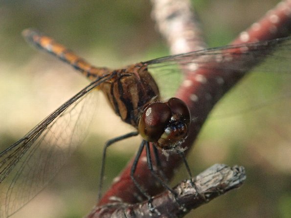 こちらは、上で紹介したマユタテアカネの近くにいた「ノシメトンボ」です。
