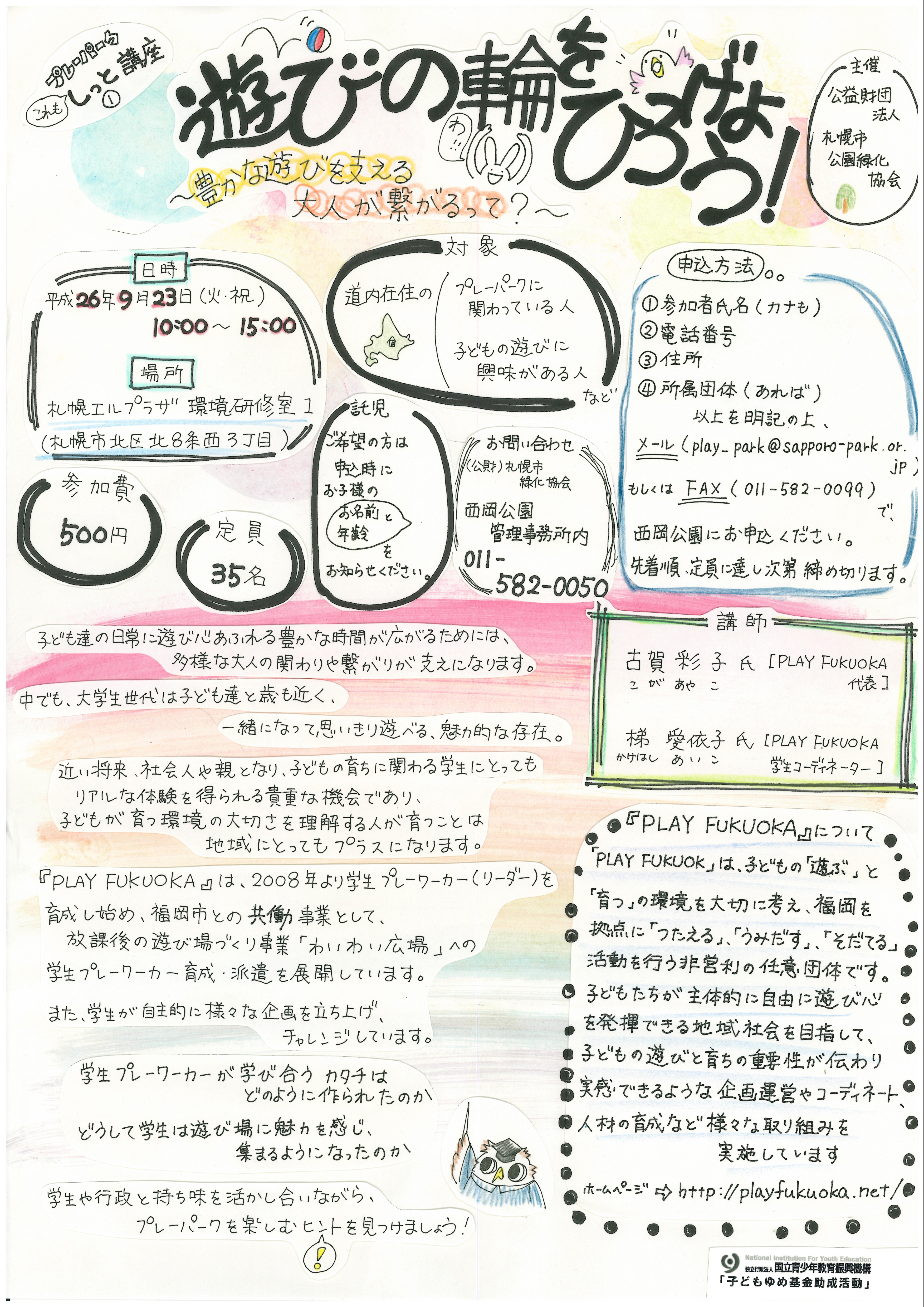 第一弾は、遠く福岡からPLAY FUKUOKAの古賀さんと梯さんを講師に招き、