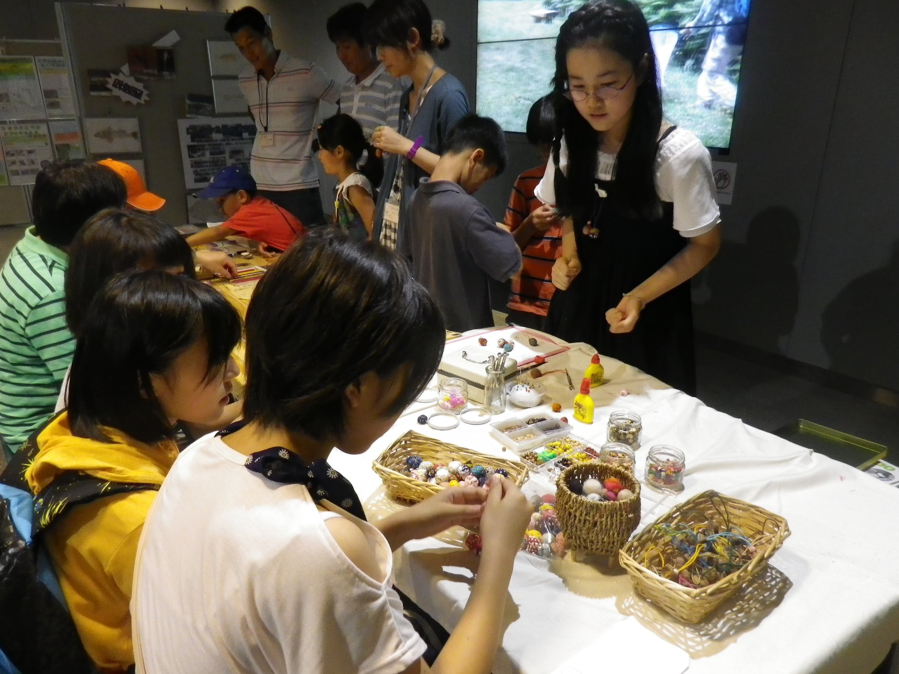 西岡公園のドングリで作るストラップや、木の輪切りに絵を描いて作るストラップなど、自然の素材を使った手作りを楽しんでいただきました。