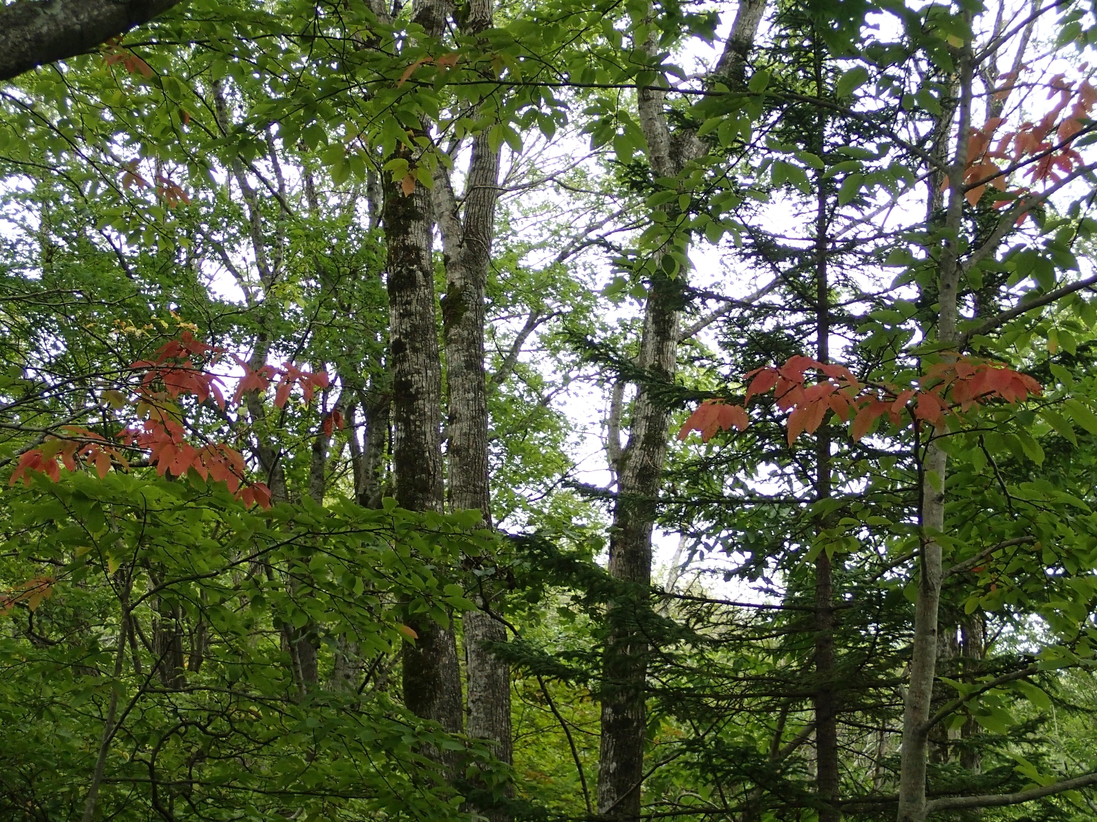 公園の奥では、シウリザクラが早くも赤く色づいていました。