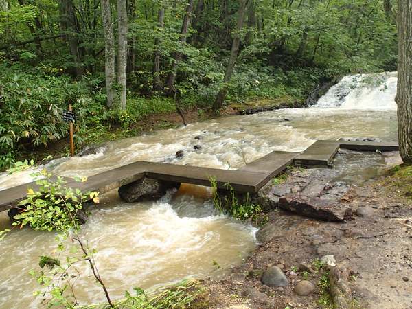 なお、八ツ橋周辺は通ることができますが、川の水はまだ増水しているので、十分にご注意ください。