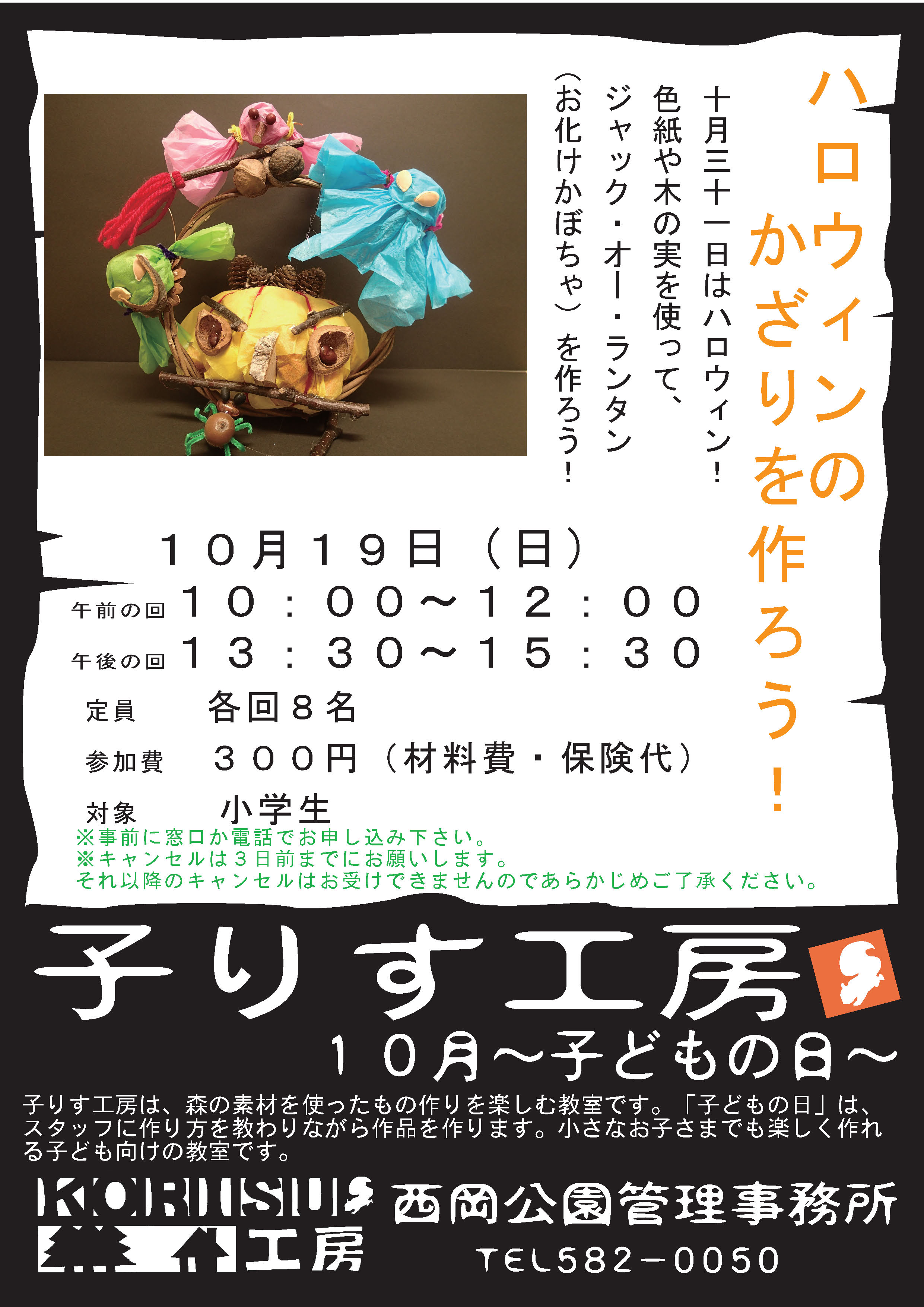 10月の子りす工房~こどもの日は、ハロウィンのかざりをつくります。