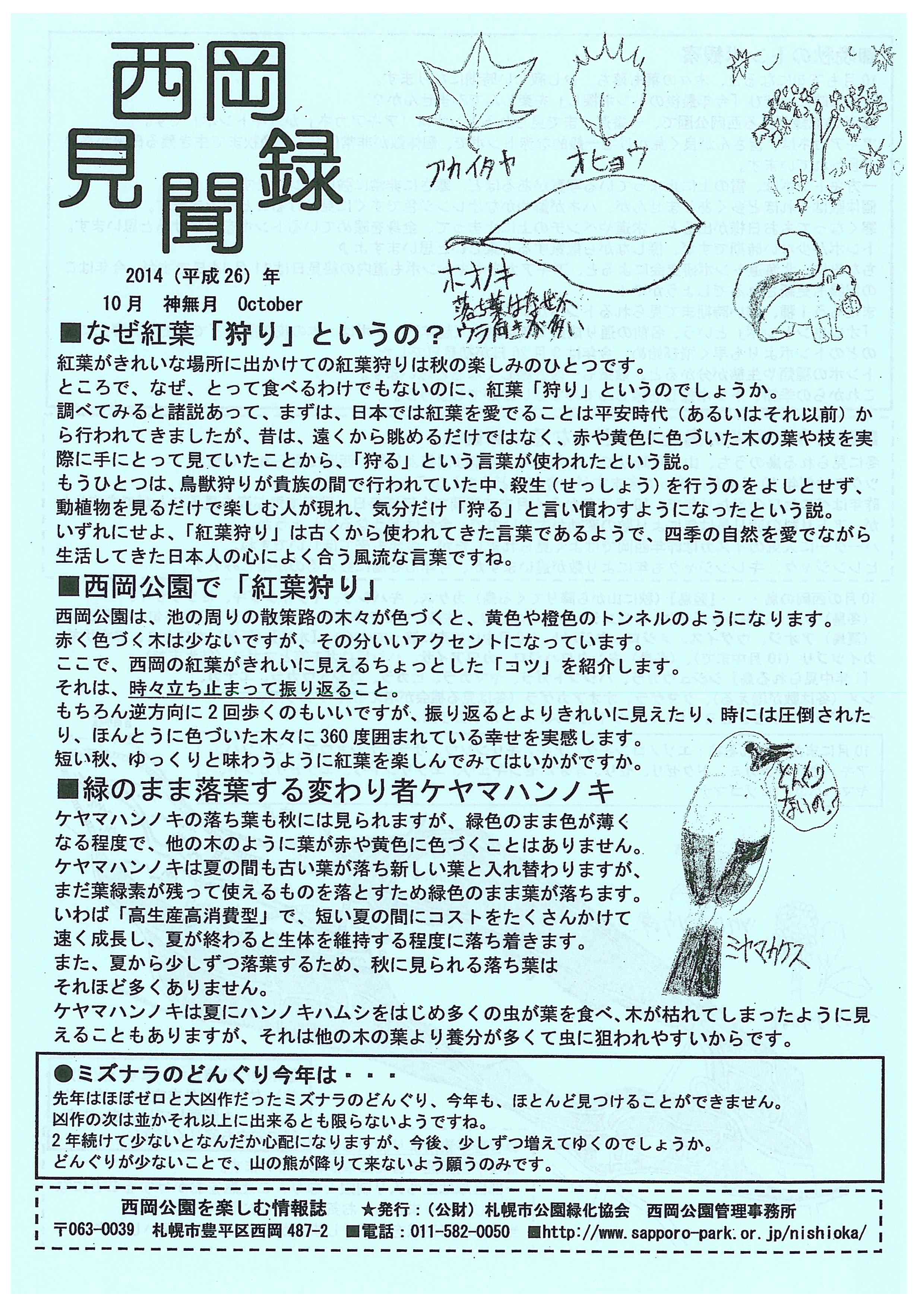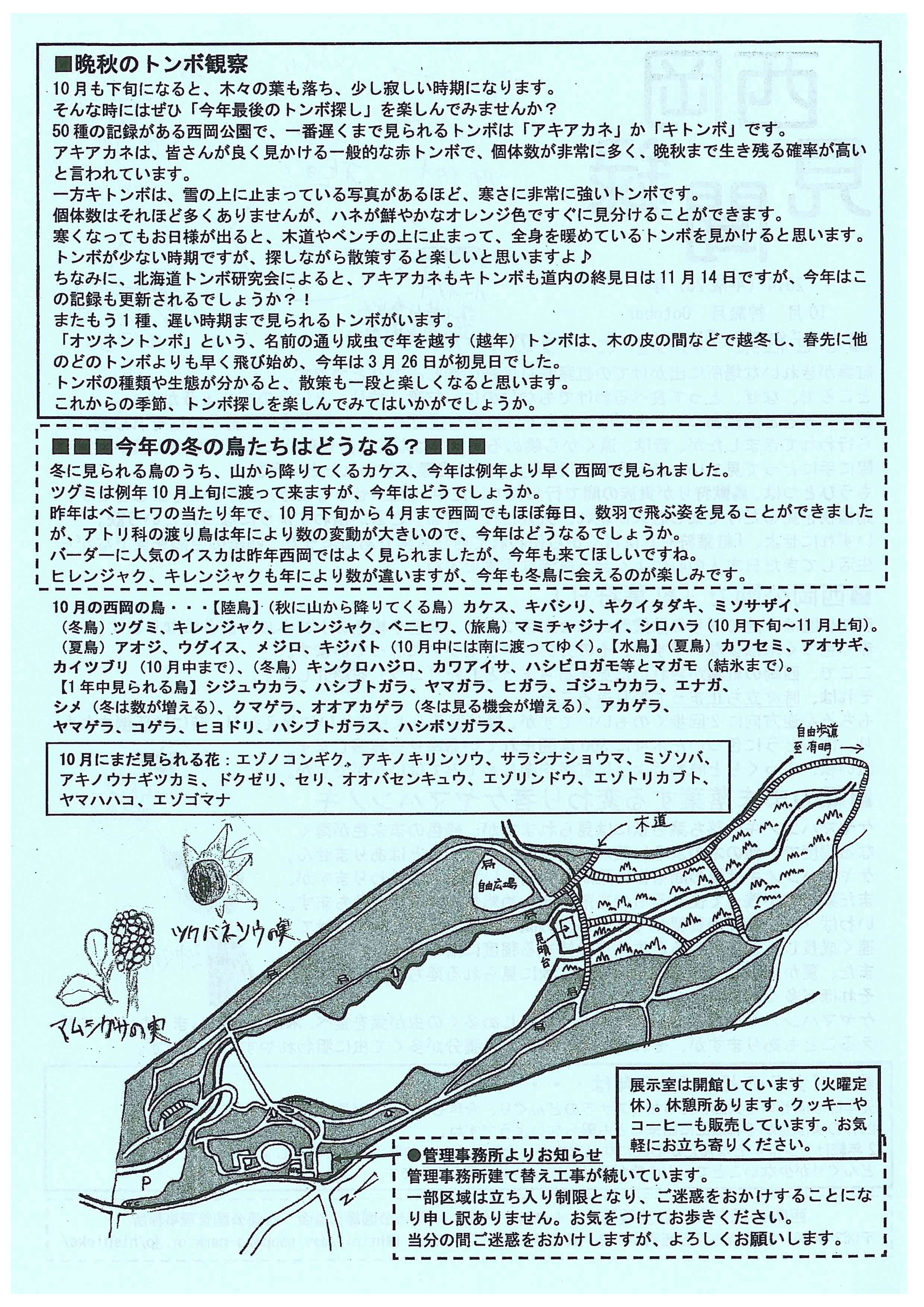 今月は、「紅葉狩り」の由来、西岡で「紅葉狩り」を楽しむちょっとしたコツ、とんぼの季節が終わる話、冬の野鳥などもりだくさんの内容になっています。