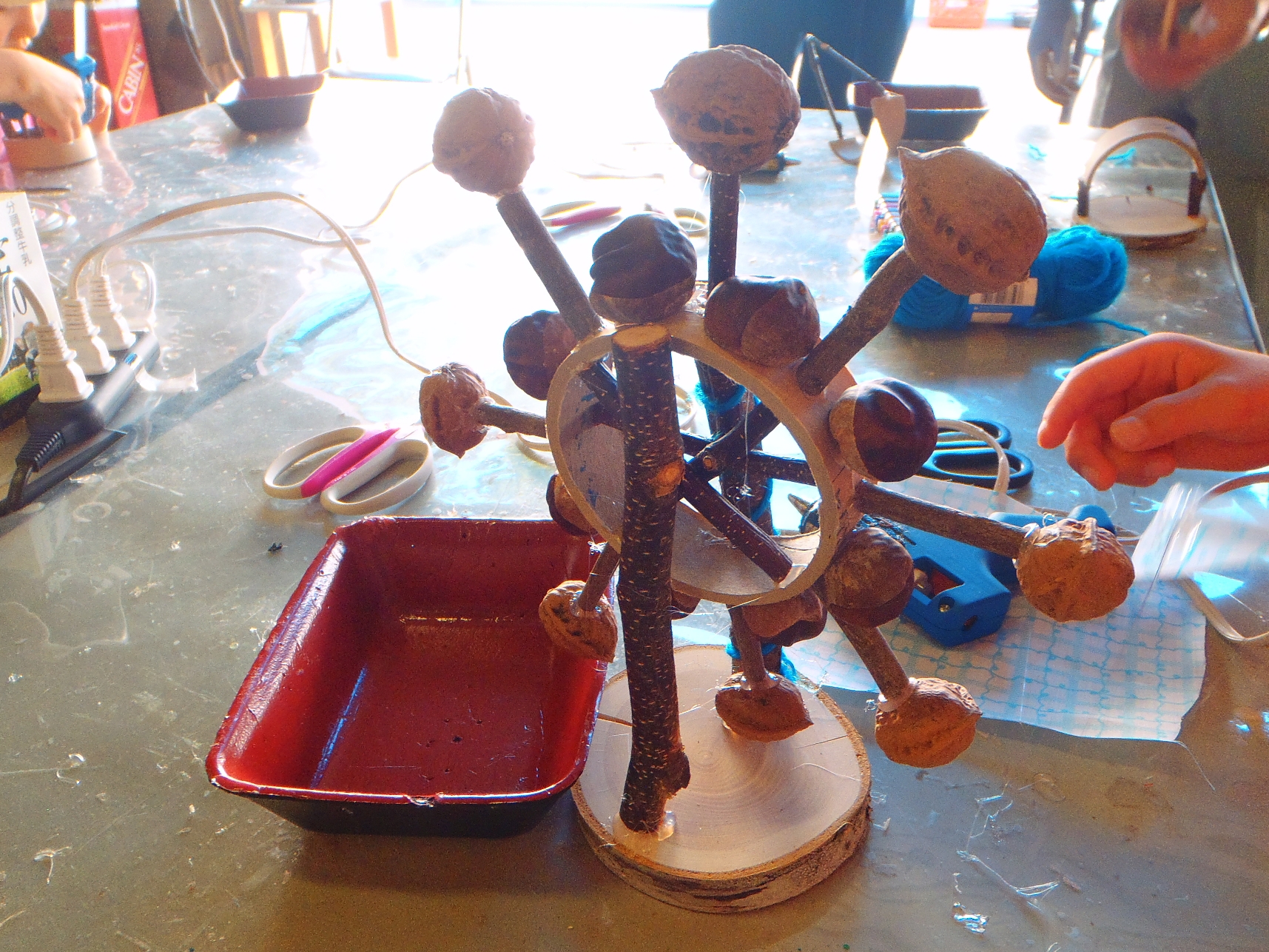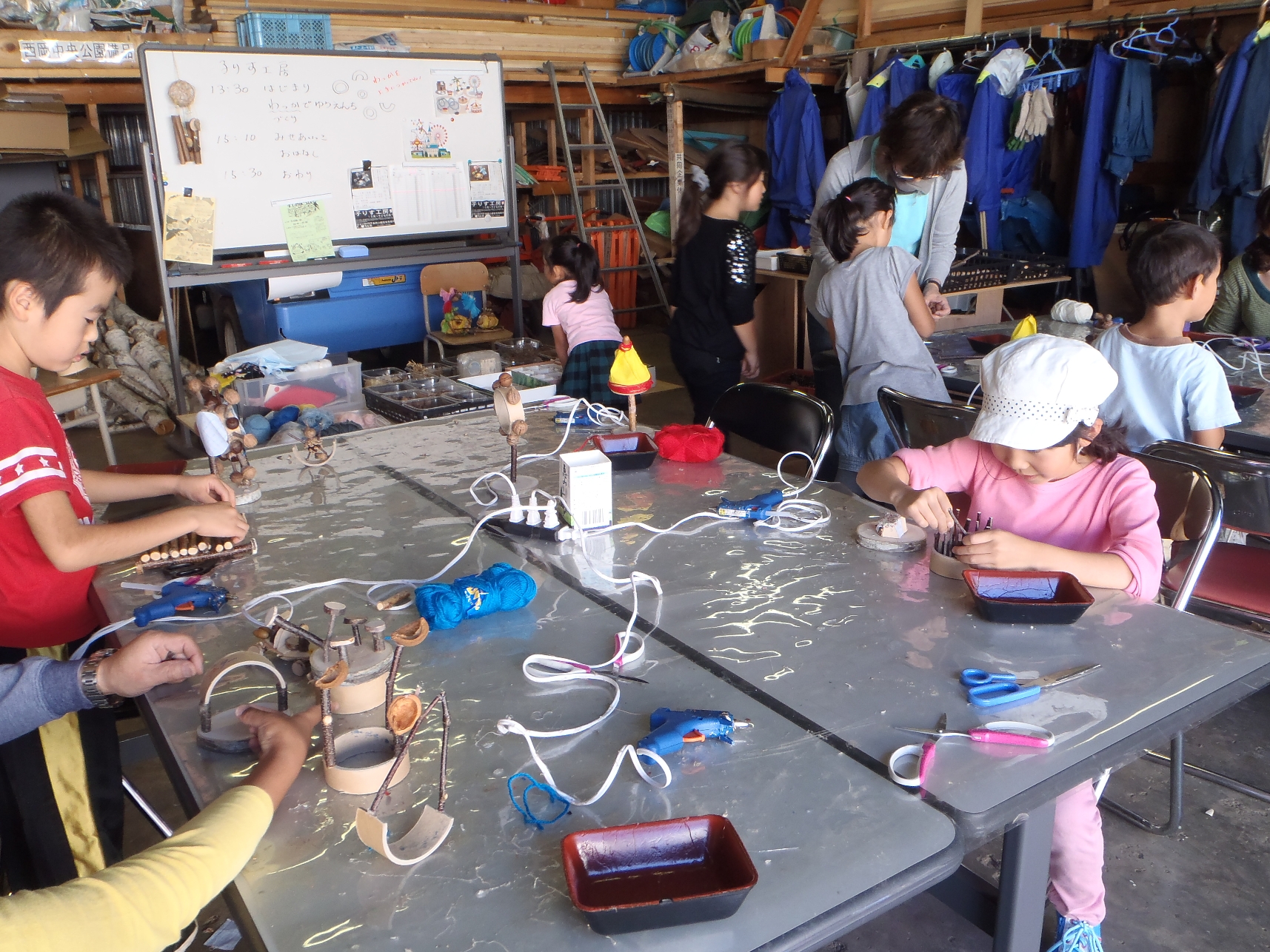 今日は子りす工房~こどもの日で、木の実や紙でできた輪っかを使って、