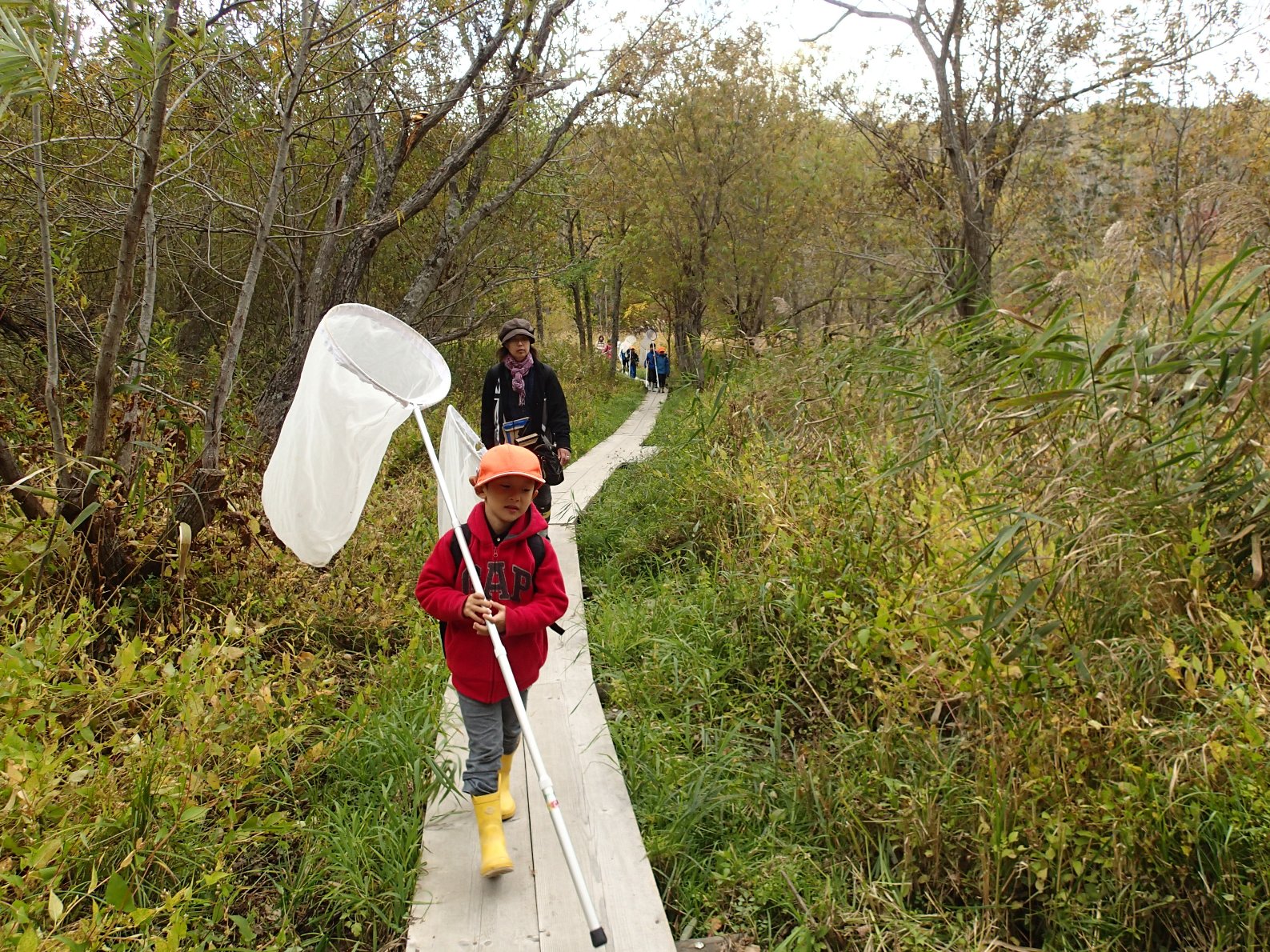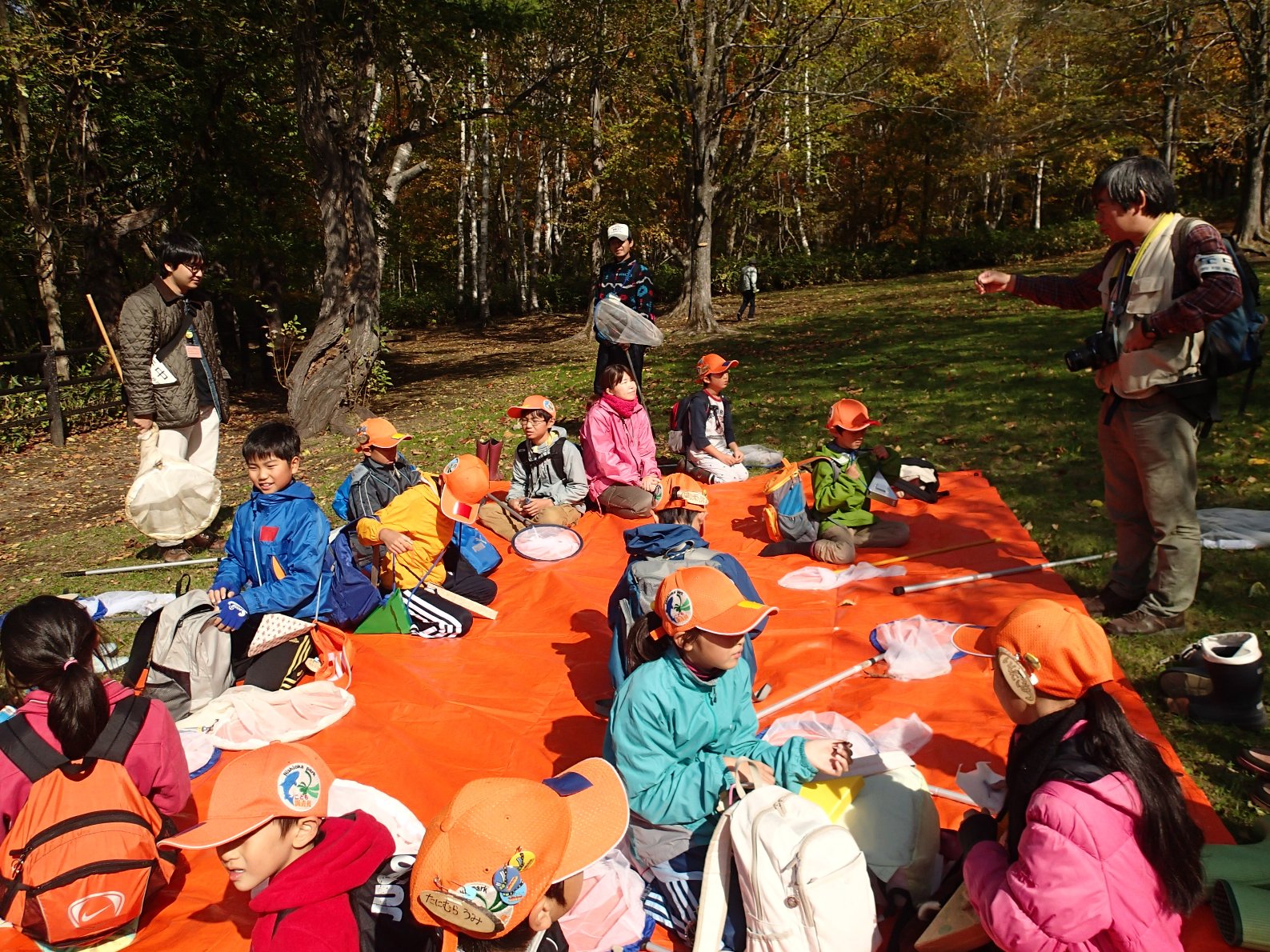 今回も、木道広場でトンボのおじさんから採卵方法を教えてもらい、