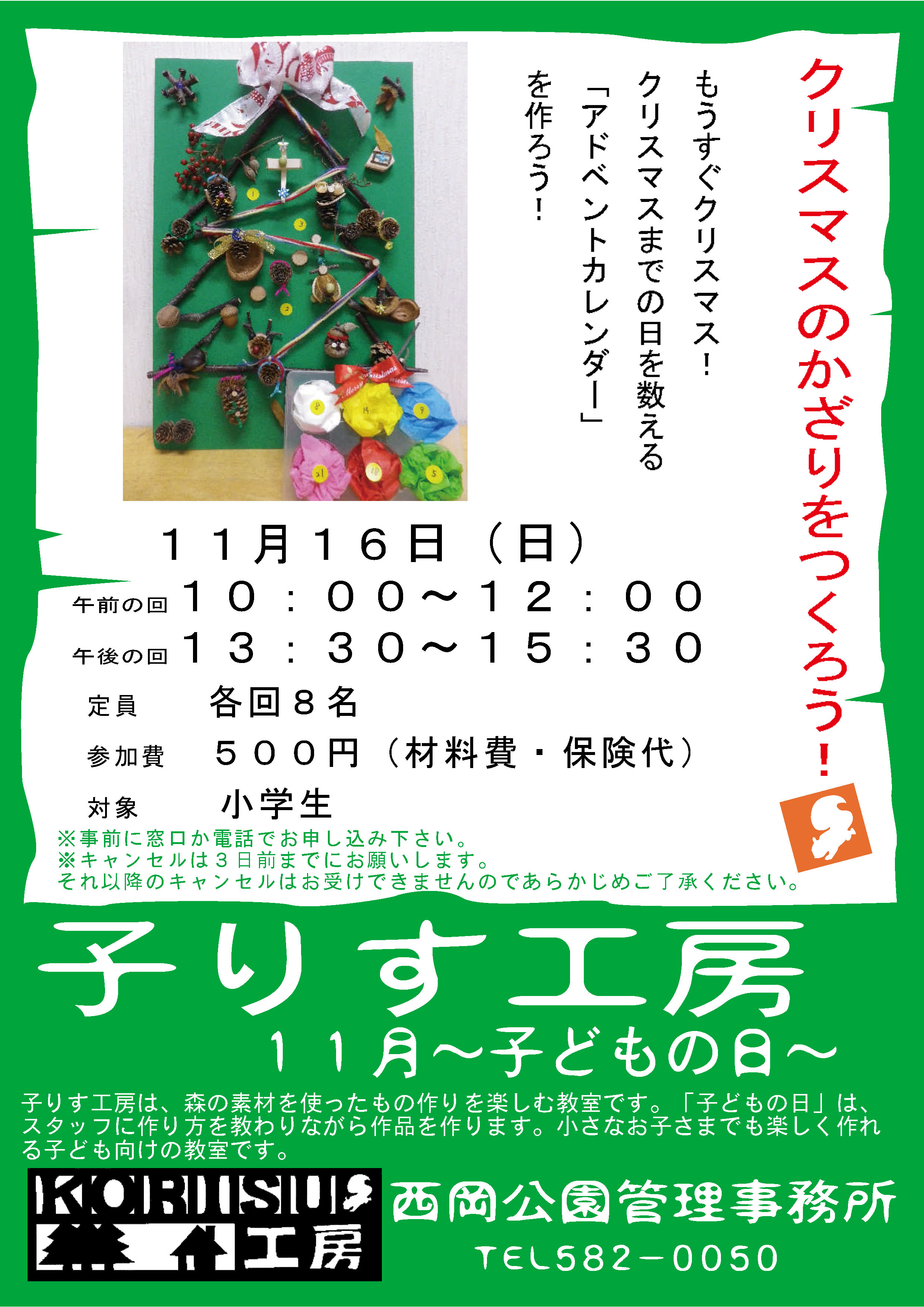 11月の子りす工房~こどもの日は、クリスマスまでの日を数える