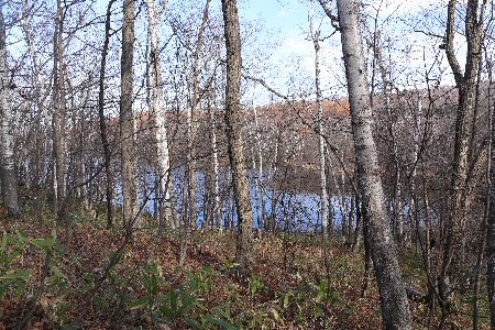 森の木々の葉がすっかり落ち、木の間越しに池が見えるようになりました。