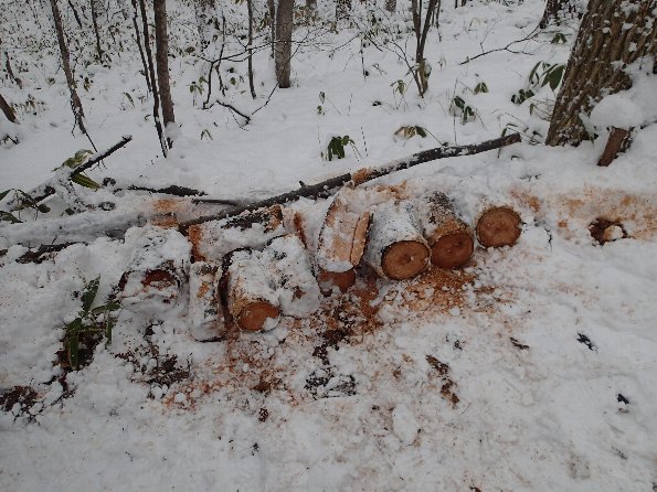処理した倒木はその場で綺麗に小分けにされ、運搬しやすくなっています♪♪さすが!!!!