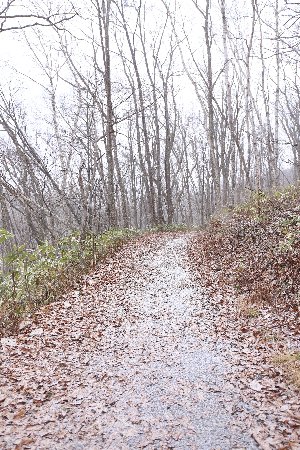 雪の降り始め、白い道