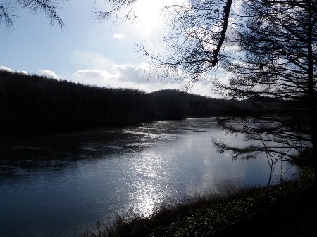 ここ数日、最高気温2度という日が続いたせいか、水源池が急激に凍り始めました。
