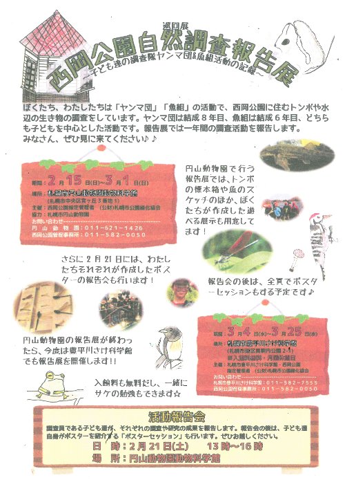また、円山動物園開催終了後は場所を豊平川さけ科学館に移し、再度報告展を開催します!!