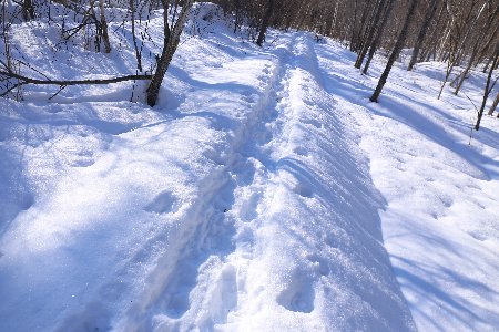 スノーシューで歩きましたが、既に誰かが歩いた場所は問題なく歩けました。