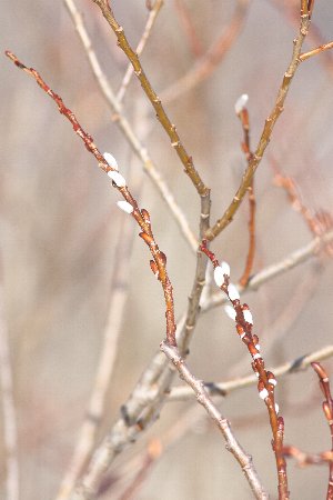 昨日の暖かさのせいか、ヤナギが一部芽吹いていました。