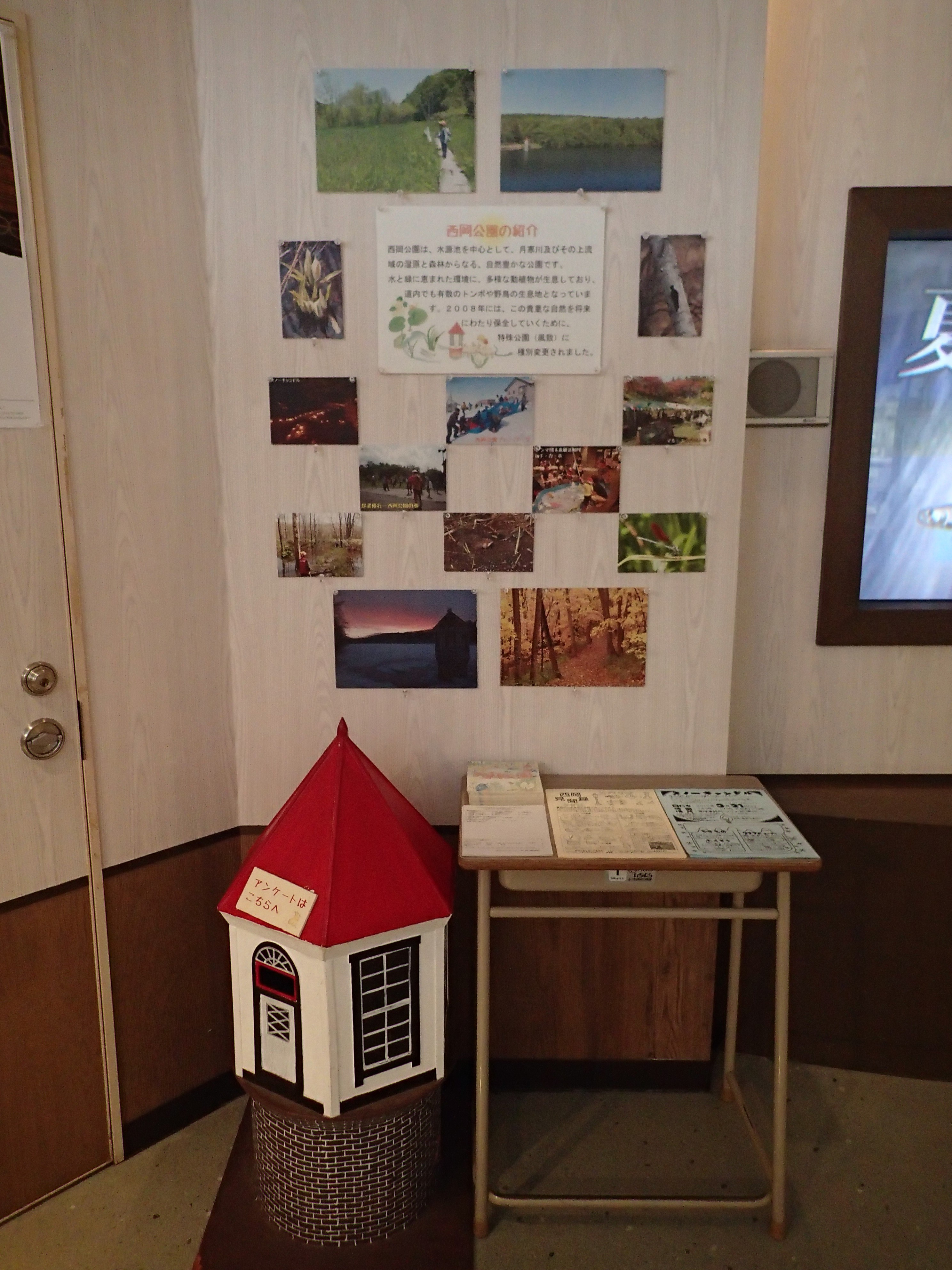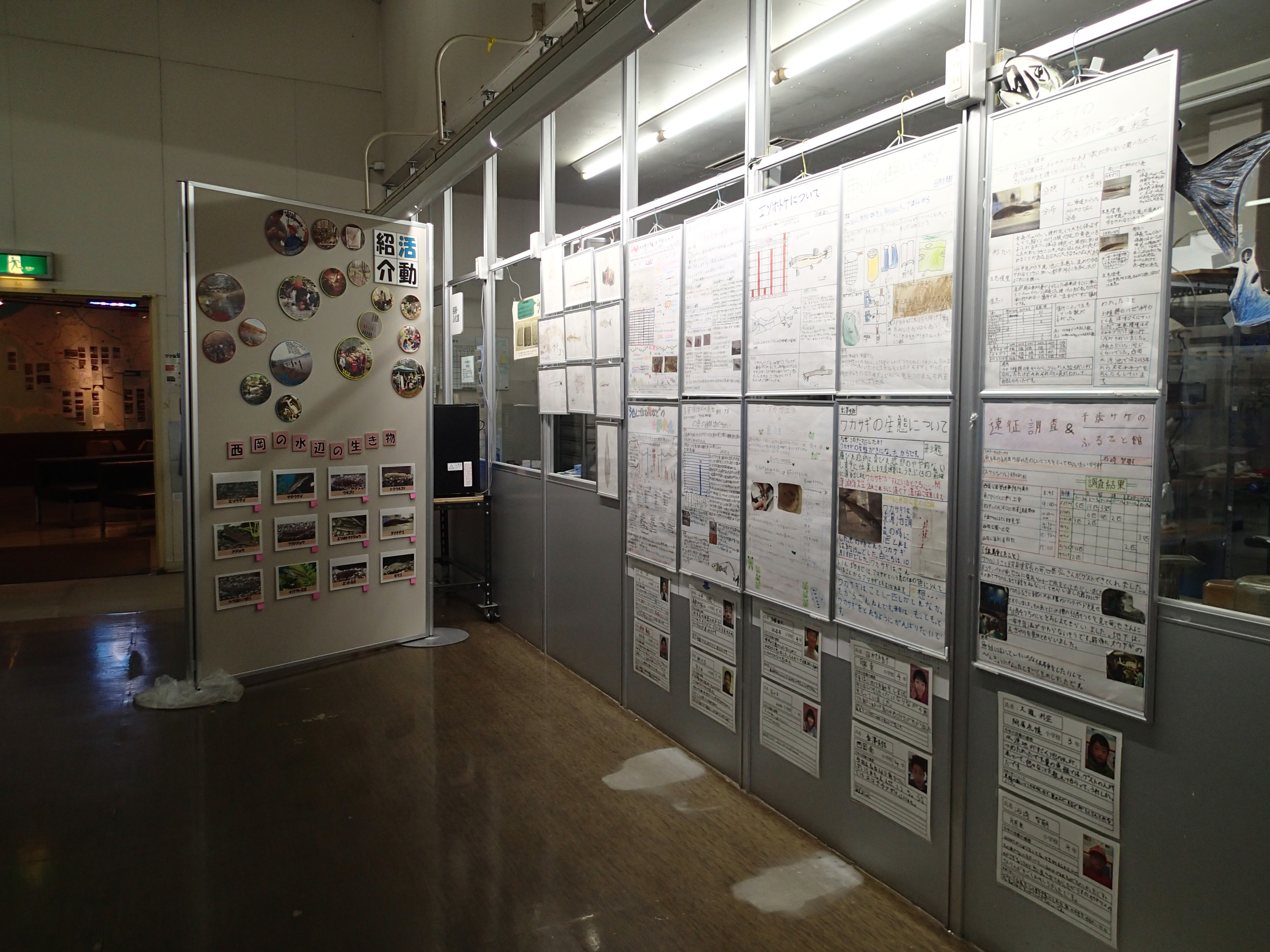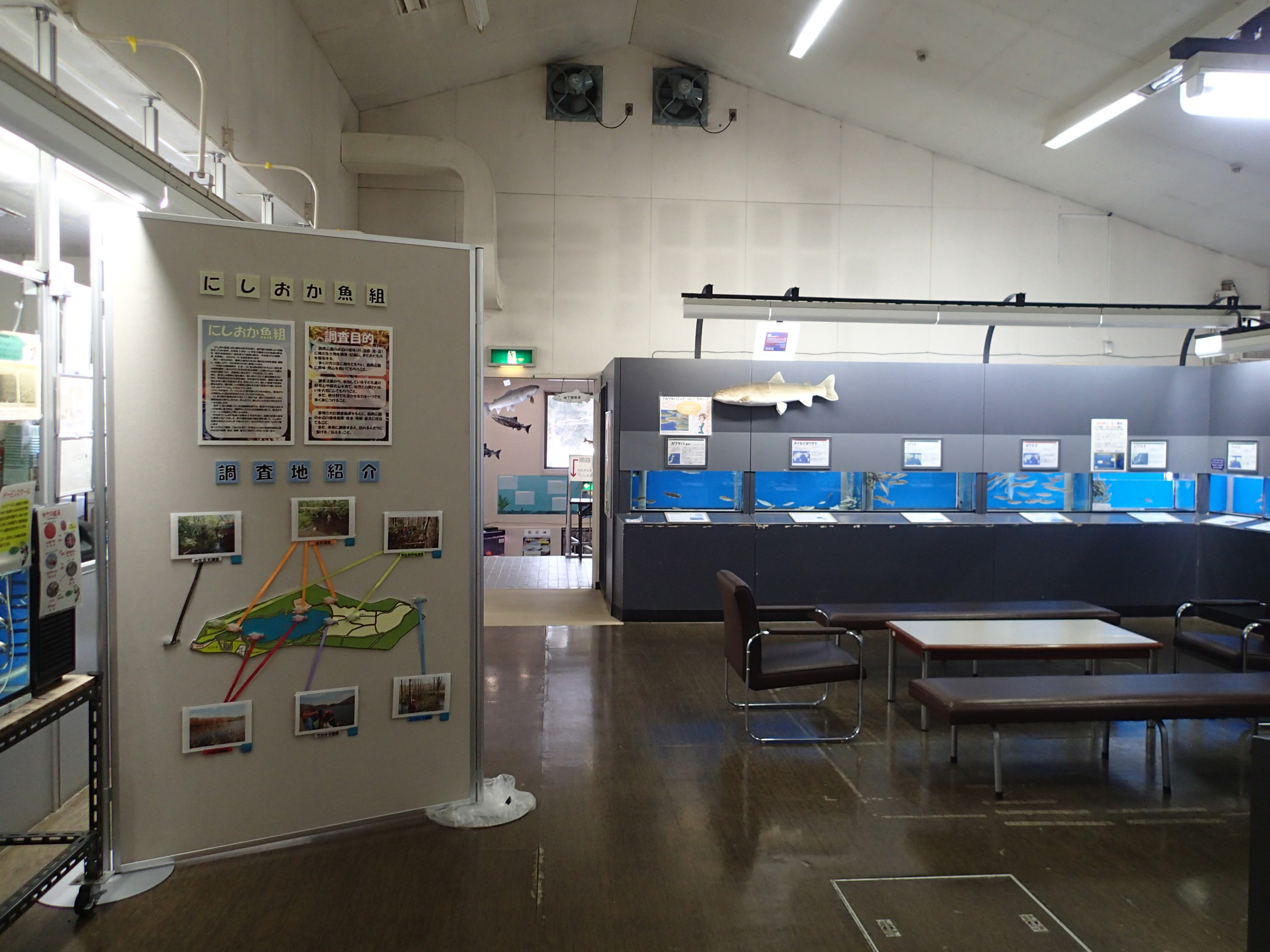 西岡公園内での調査地や、すんでいる魚の紹介展示もあります★