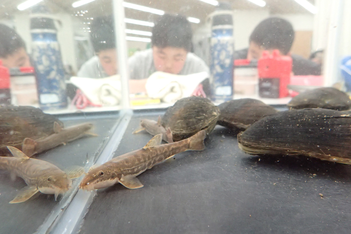 西岡さかな組では特別に許可をとって生き物の採取・観察を行っています。