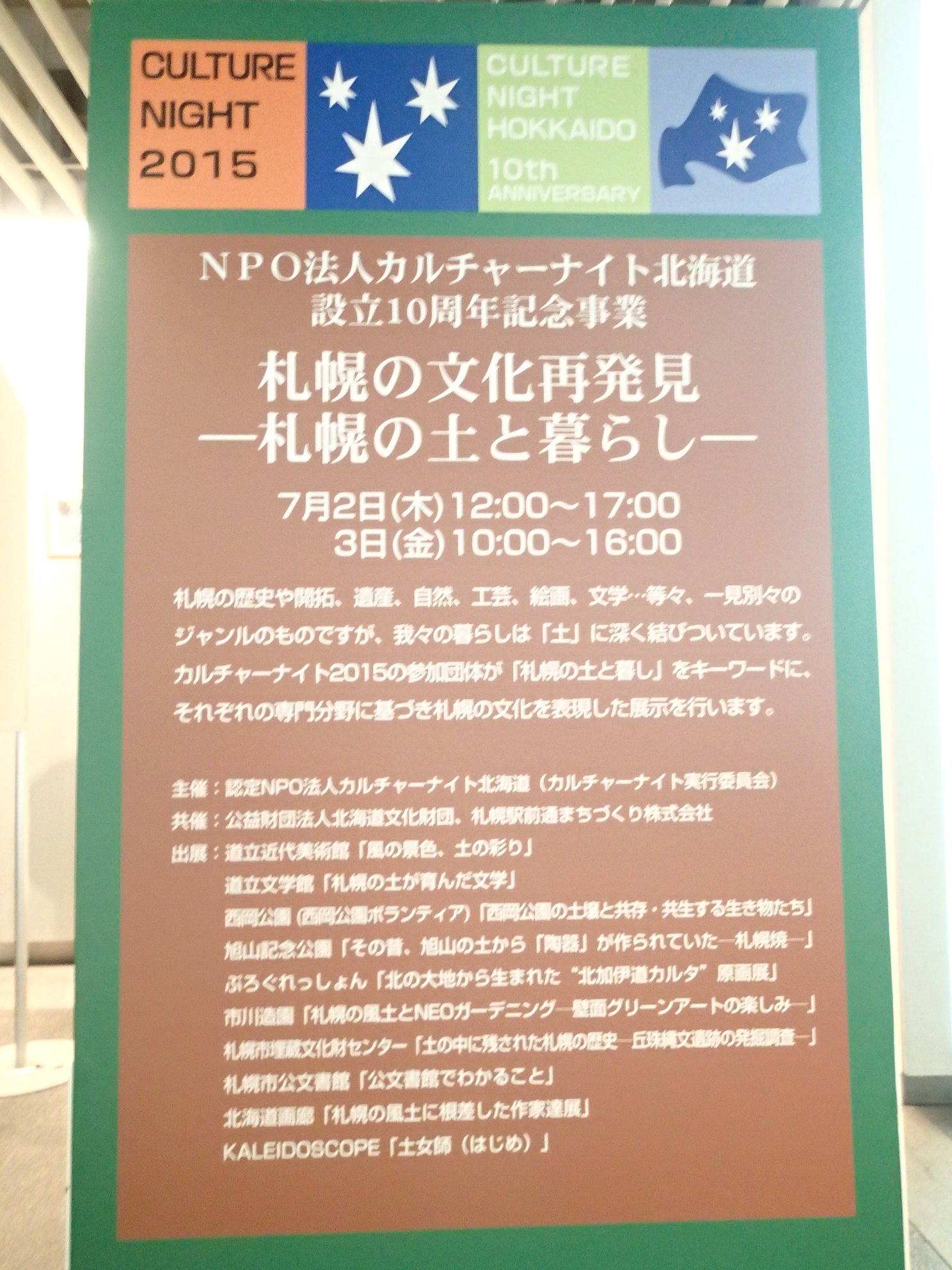 「NPO法人カルチャーナイト北海道設立10周年記念事業 札幌の文化再発見ー札幌の土と暮らしー」