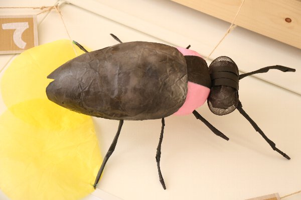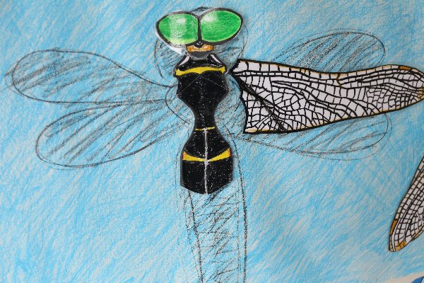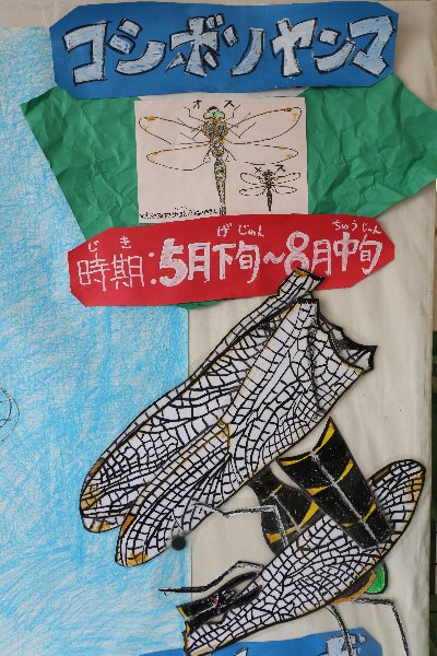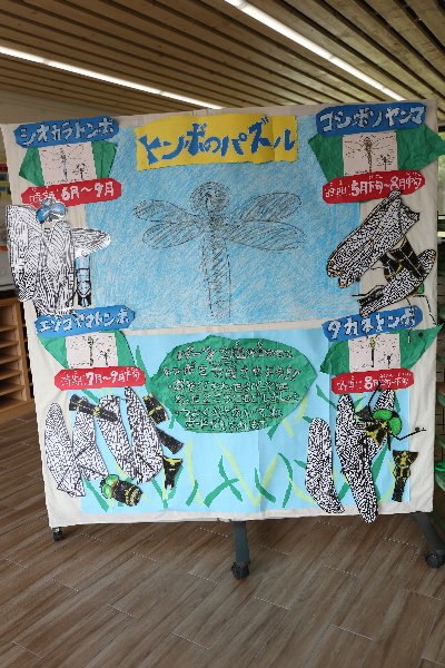 4種類のトンボの絵が細かくパーツに分けて展示されており、お好きな1種を真ん中で組み立てることができます。