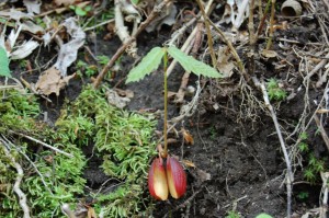昨日は、植物調査の会の調査に同行しました。 植物を探しながらゆっくりと歩いていたら・・・・・・・・ きれいにどんぐりの先から、葉っぱが出ているミズナラに出会いました。 「こんな風に芽が出るんだよ」と教える教科書のようなドングリでした。
