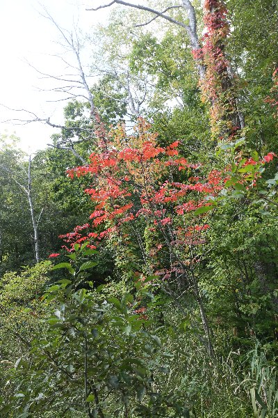 木道沿いにあるこのヤマウルシは毎年きれいに赤くなります。