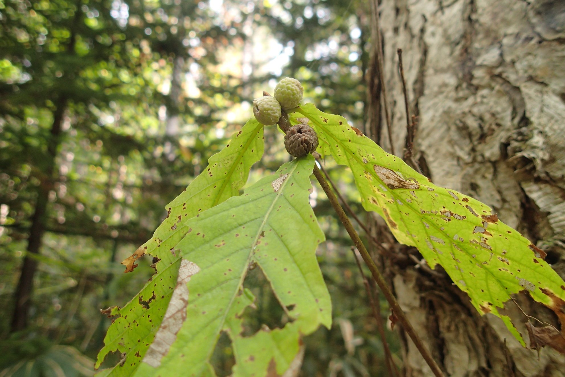 ミズナラの木でどんぐりの赤ちゃんを発見。