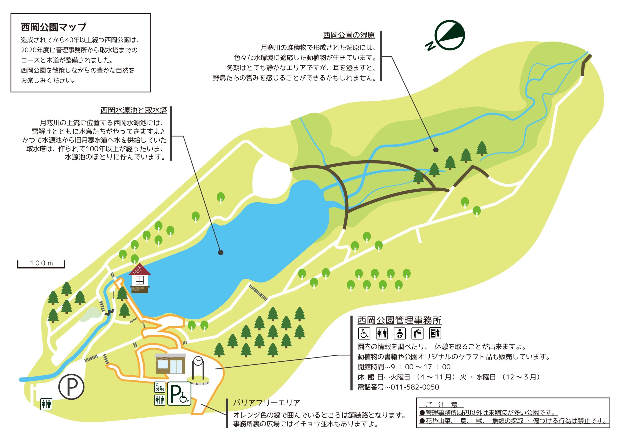 地下鉄南北線「澄川駅」から中央バス西岡環状線[澄73]もしくは[澄74]乗車~「西岡水源池」下車~徒歩1分