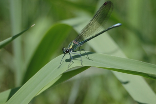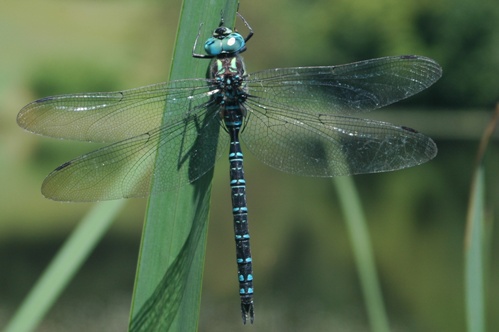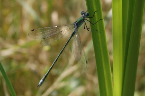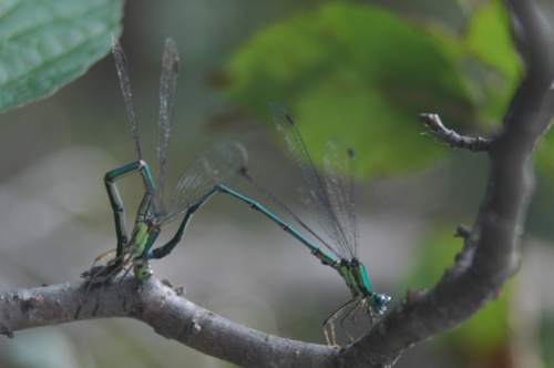 アオイトトンボの名ですが、体は金属緑色。秋によく見かける種です。割合開けた明るい所を好みます。